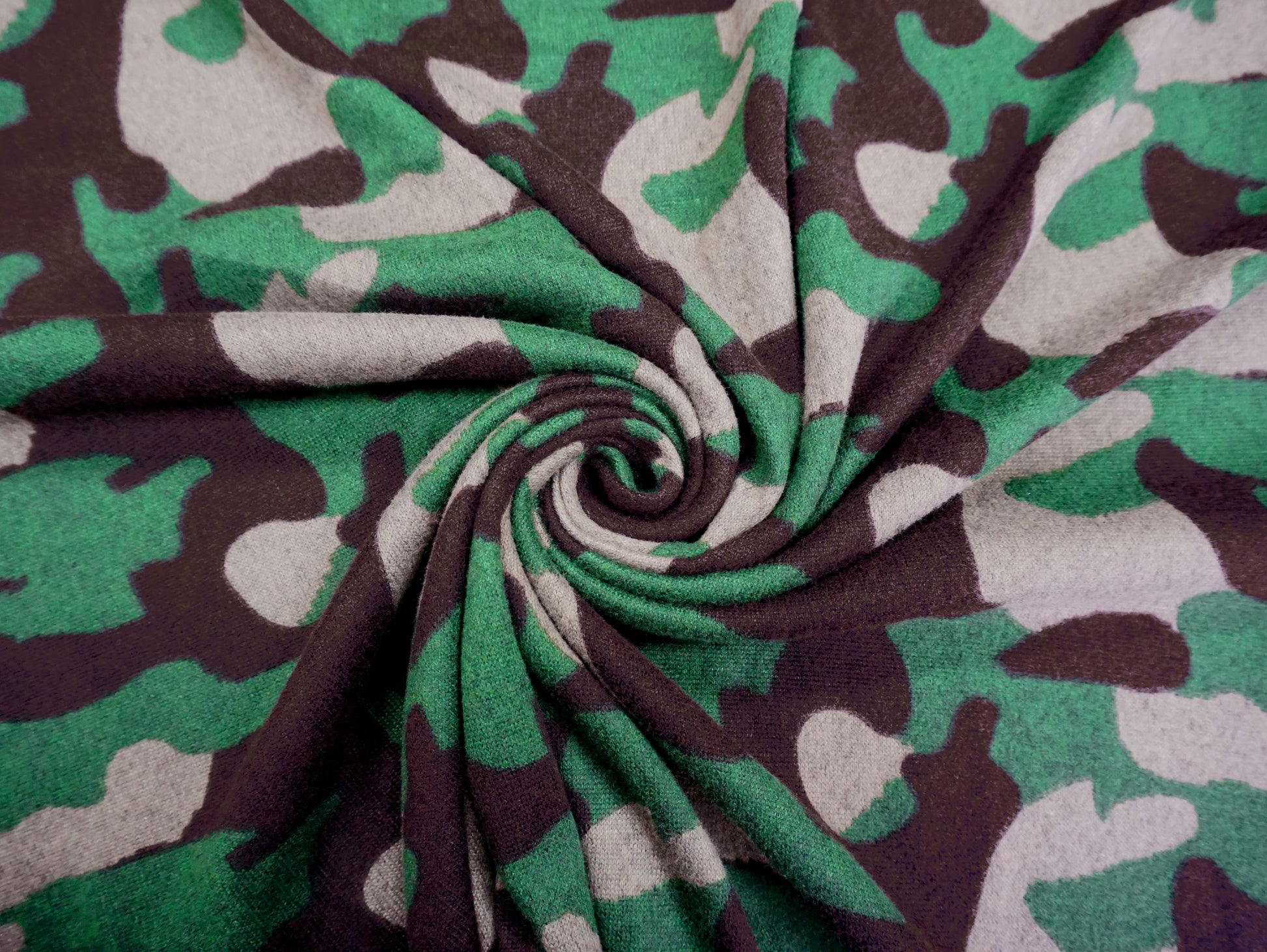 Comfy Camo Hacci Sweater Knit, Premium Quality – Green/Brown – 95% Polyester 5% Spandex – Sold by the Yard (HSPR016)