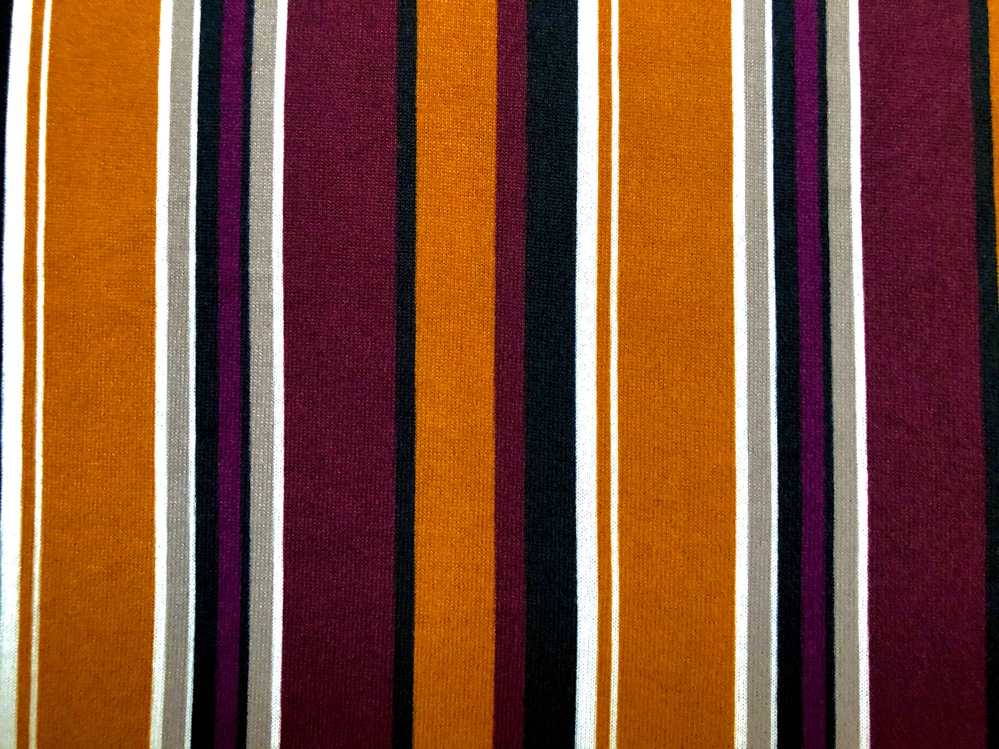 Meet the stripe that steals the show! Our cozy hacci with soft hand, fluid drape, and comfy 95/5 stretch. Mustard gold, plum and charcoal stripes pop on black. At 56″ wide it cuts fast and sews easy—perfect for cardigans, tees, swing dresses, joggers and scarves. Easy-care, year-round.