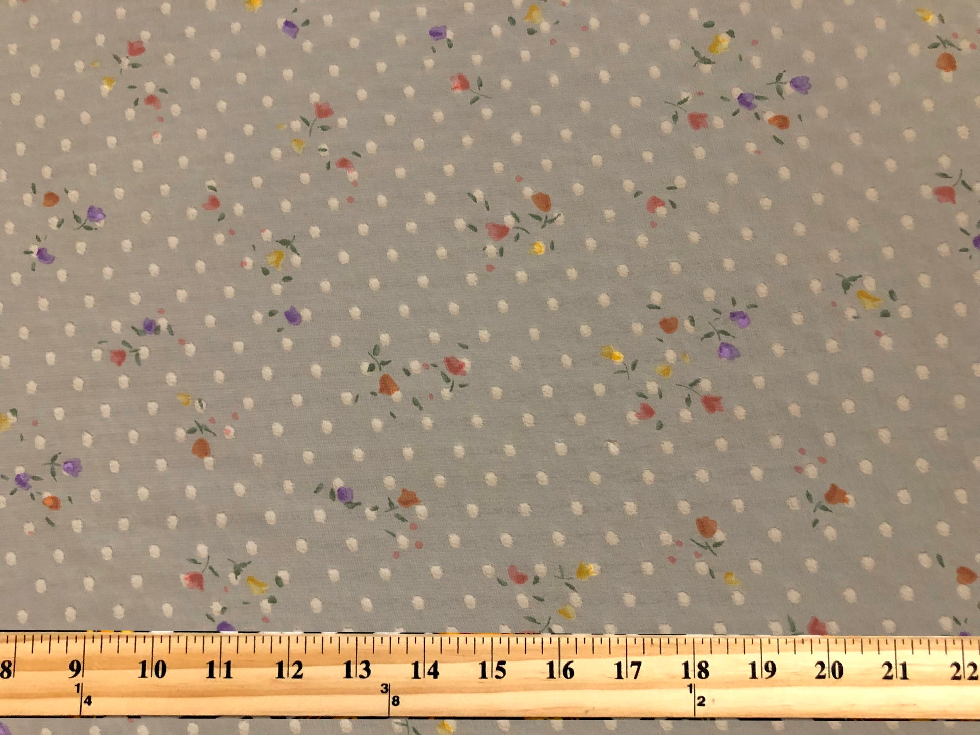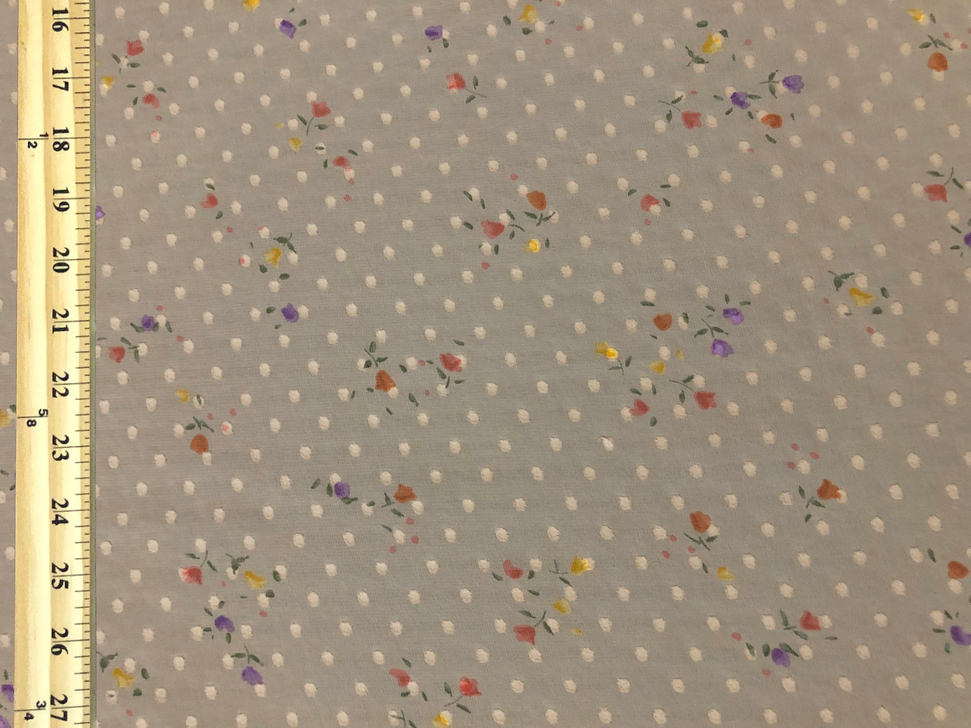Dove-Brown Chiffon Swiss-Dot Floral — Sheer Printed Fabric, 52" Wide, No Stretch — Sold by the Yard (CFPR001)