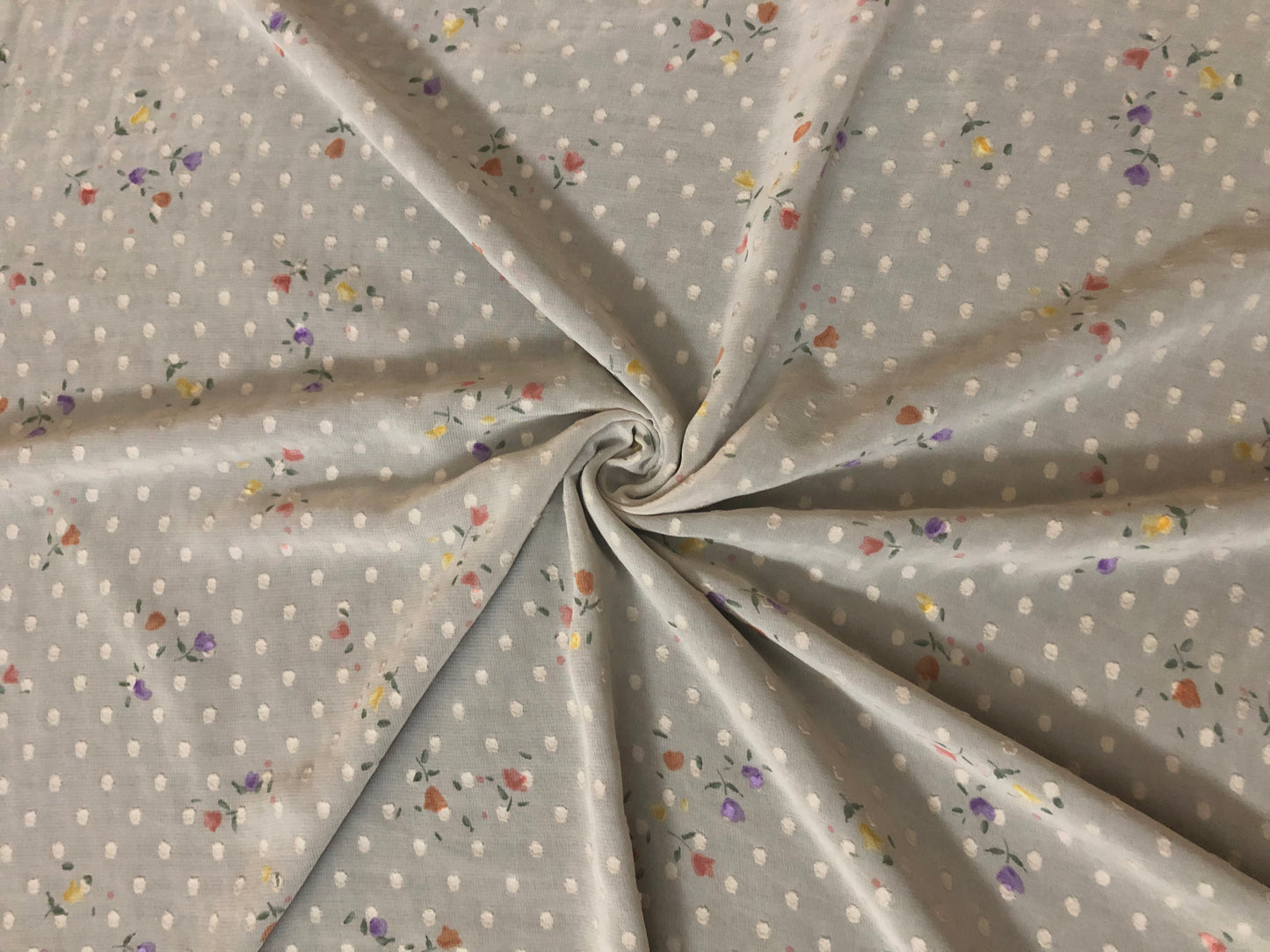 ✨ Romantic, airy, and effortless. This chiffon pairs a classic Swiss-dot texture with a soft dove-brown ground and mini floral sprigs—made for twirl-worthy layers and dreamy overlays.