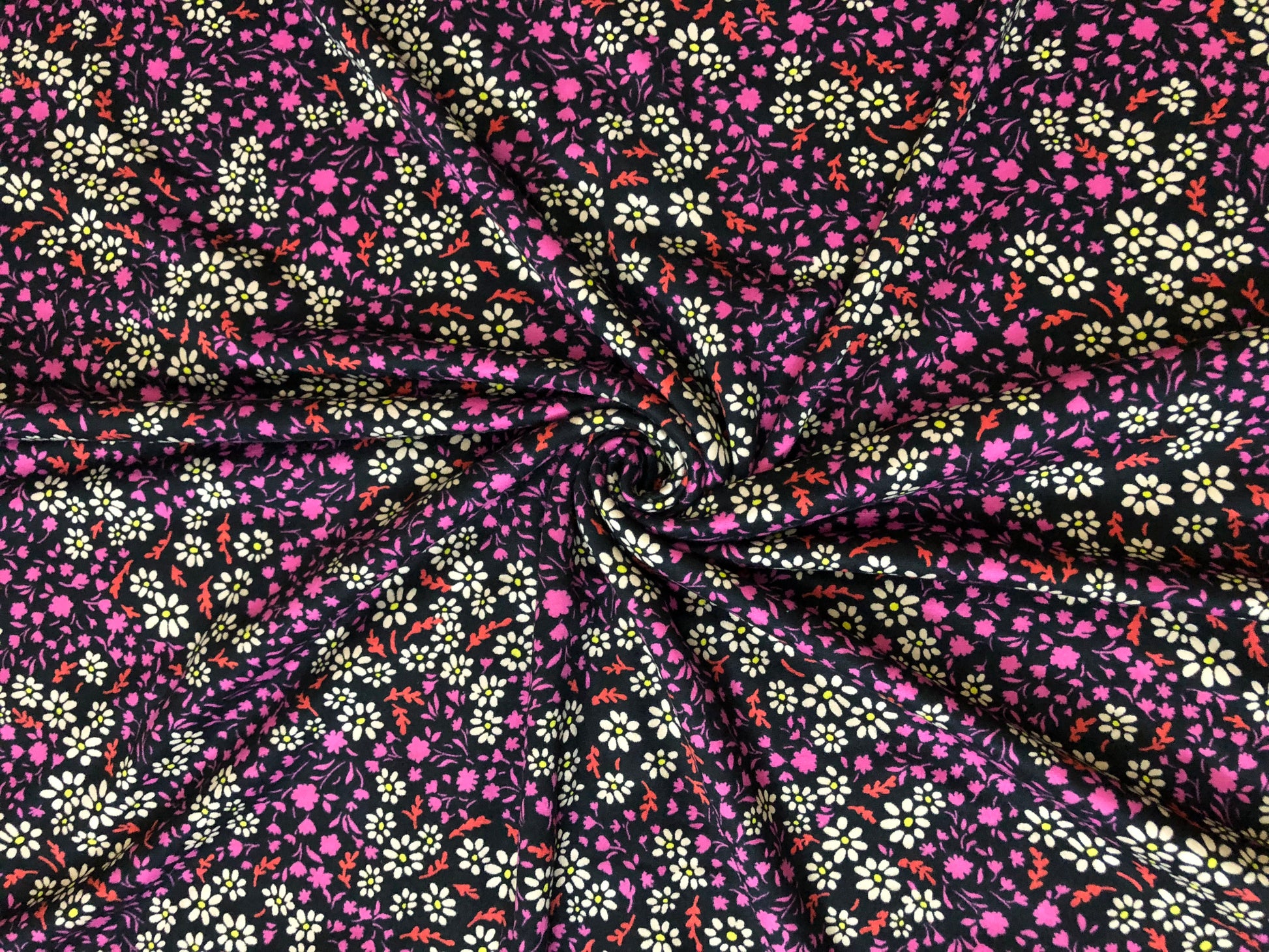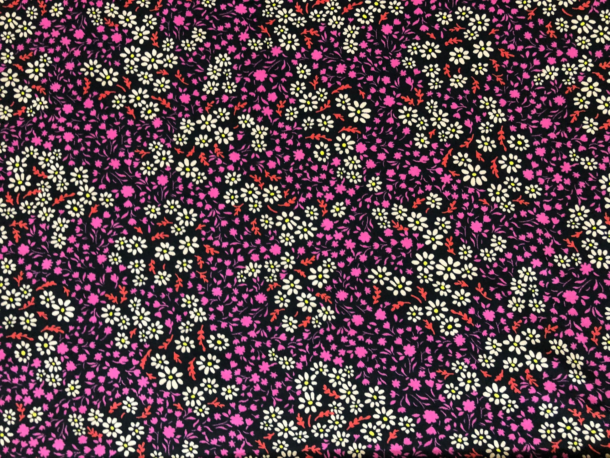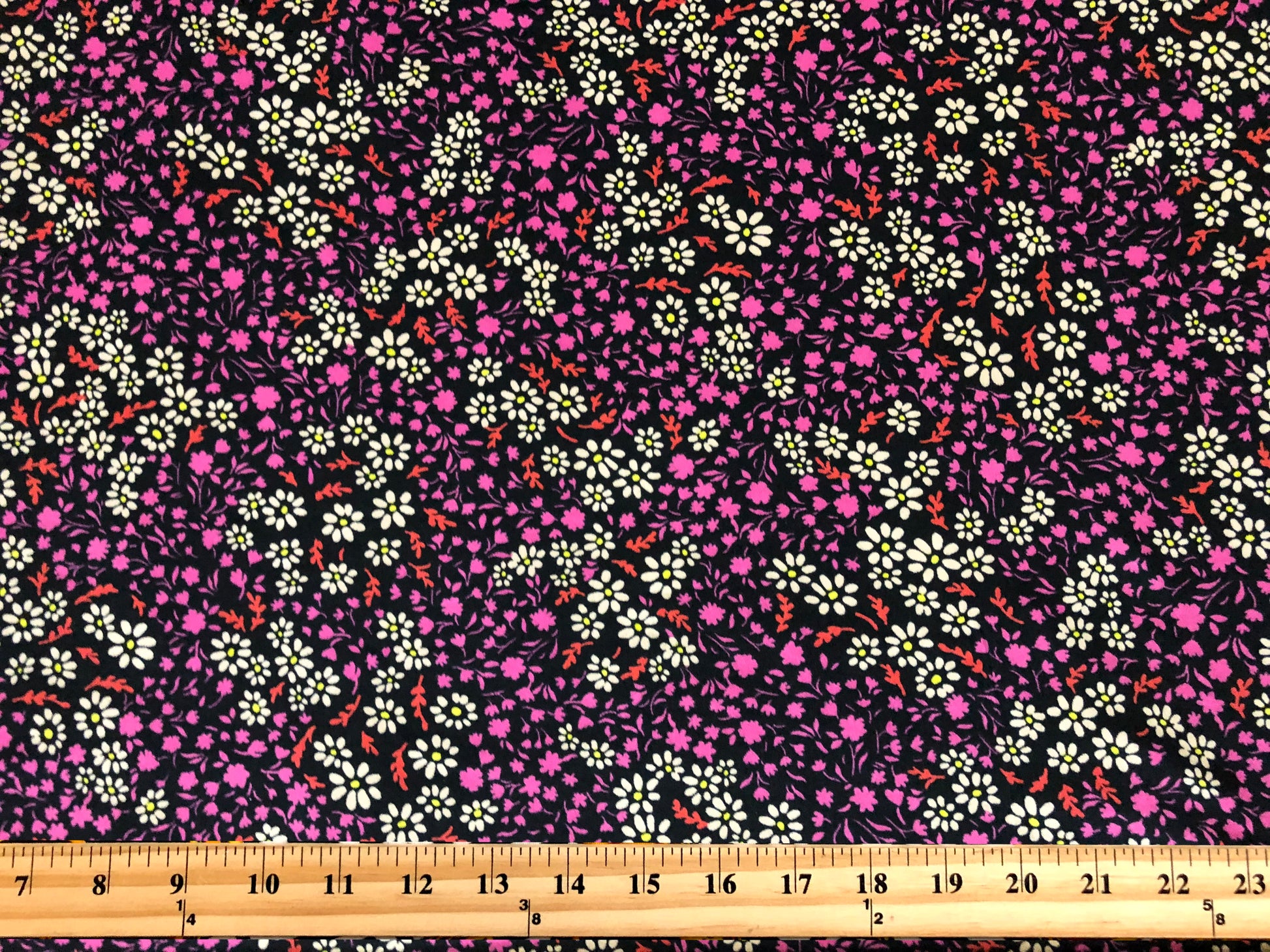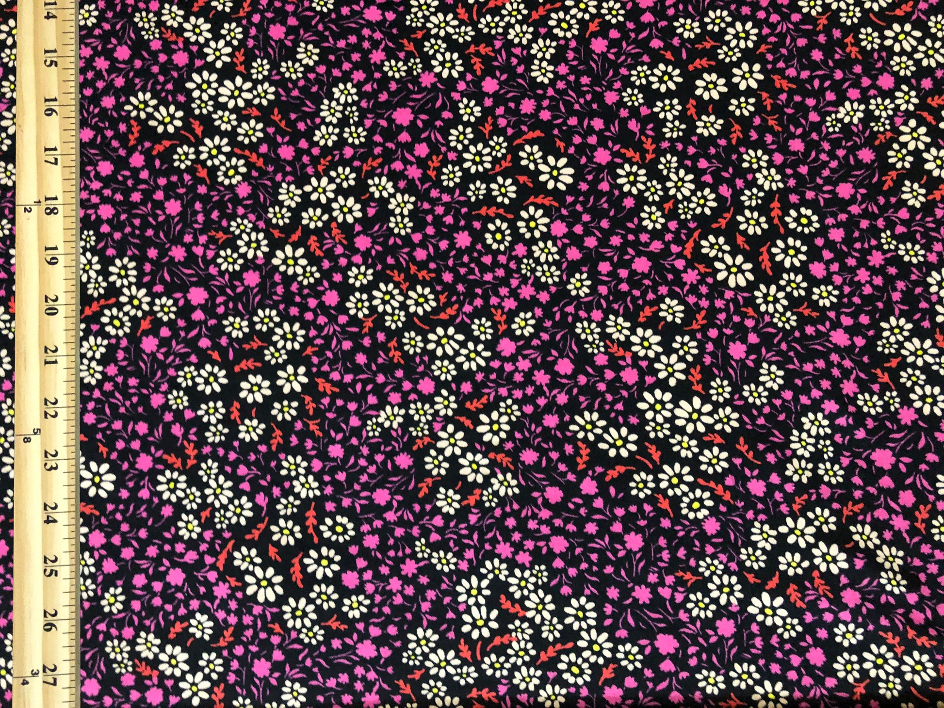 DTY Brushed Fabric| Black White Fuchsia Flowers |DTYBPR540|Sold by the Yard| Jersey Fabric
