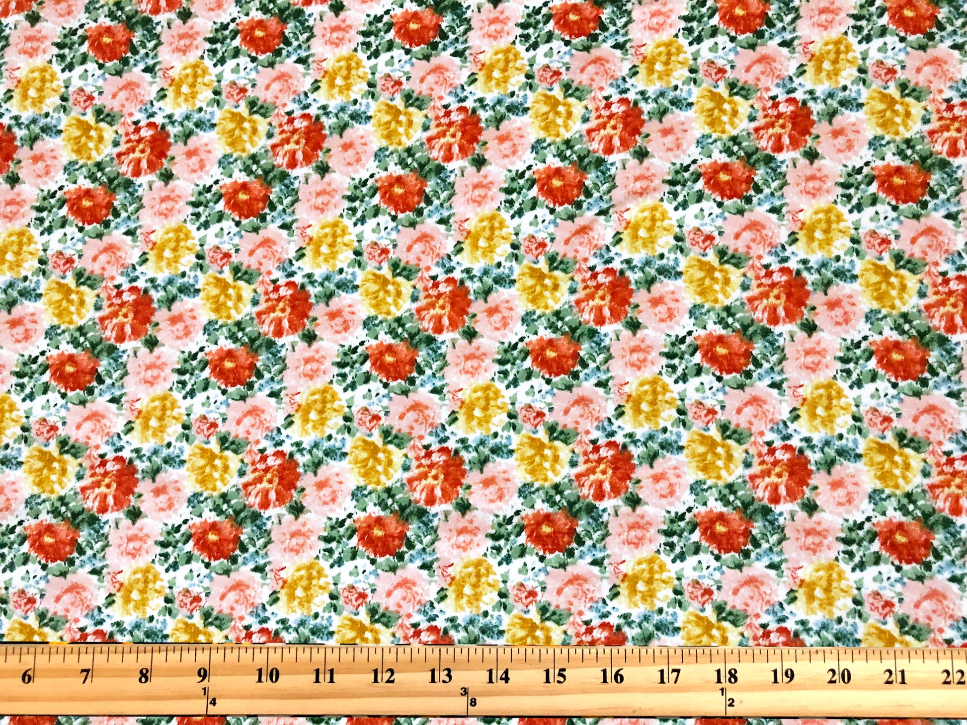DTY Brushed Fabric| Ivory Pink Gold Flowers |DTYBPR539|Sold by the Yard| Jersey Fabric