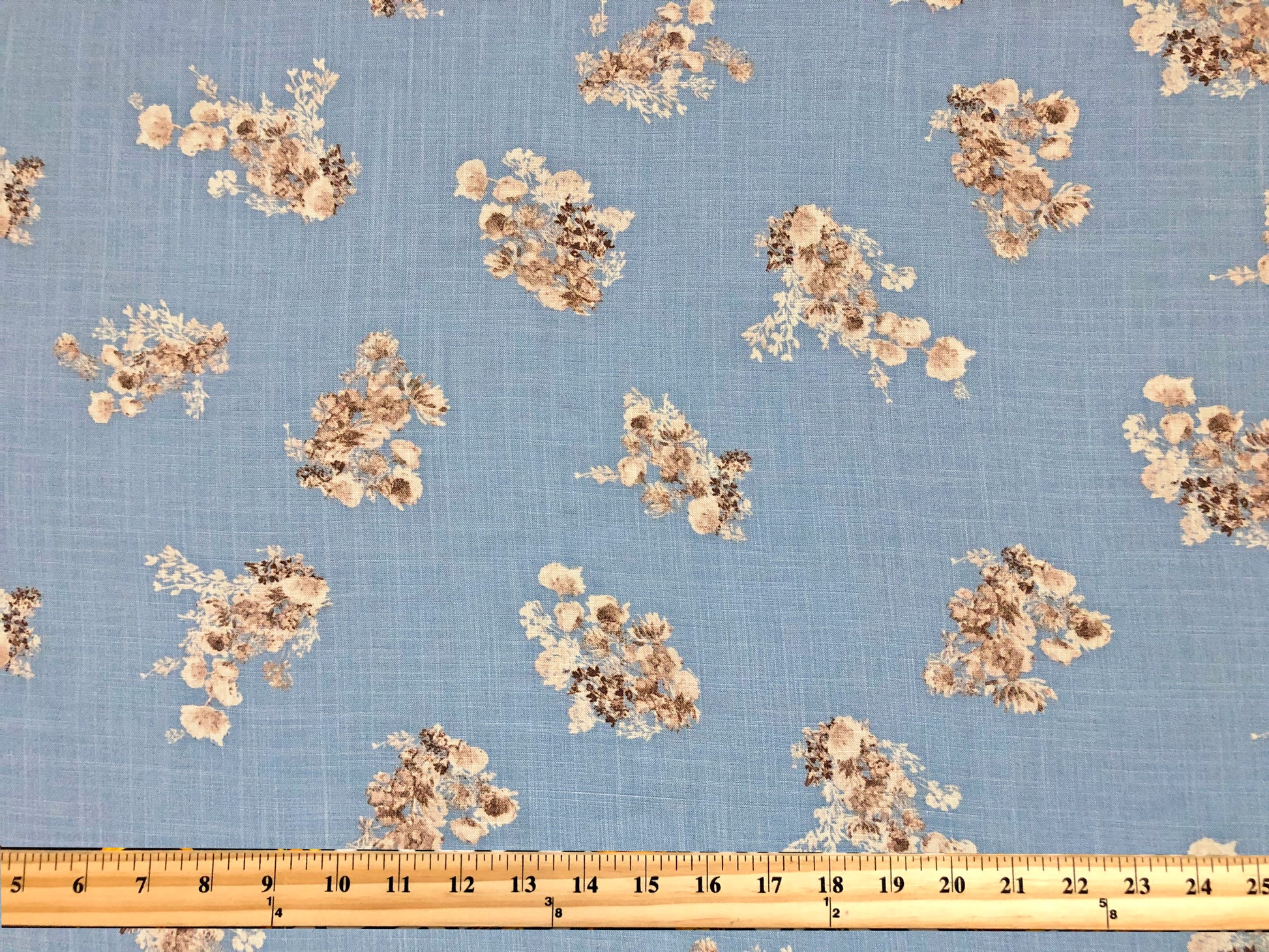Dusty Blue Rayon Slub with Cream/Taupe Floral Sprigs — 100% Rayon, 52″ Wide — Fabric by the Yard (RSLPR02)