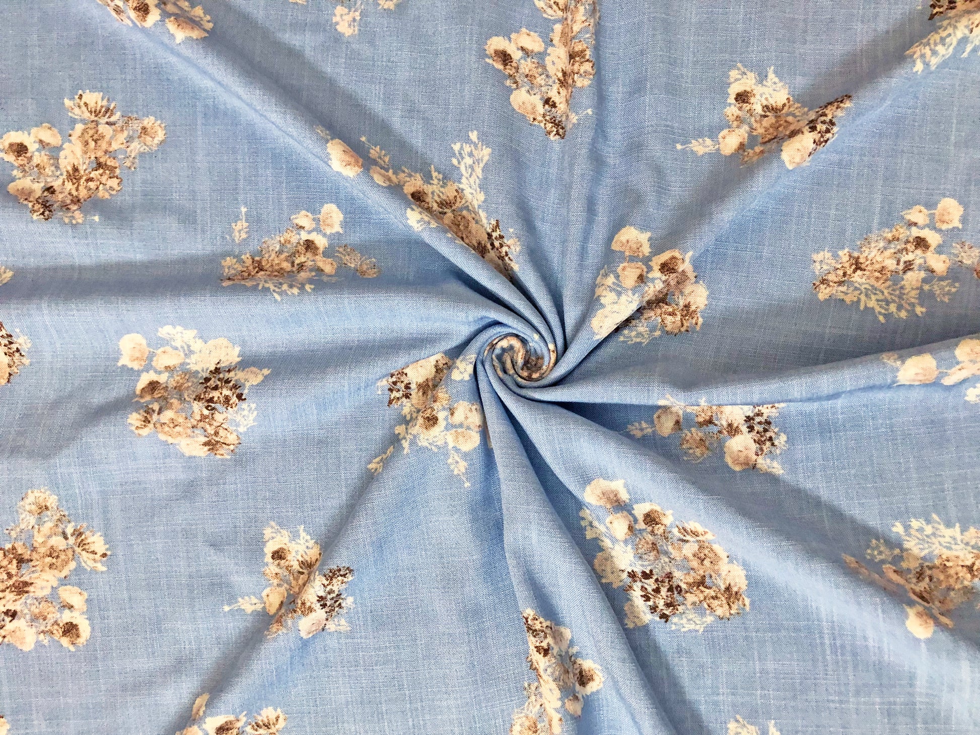 • 🎨 Colors/Print: Dusty blue with cream & taupe floral clusters