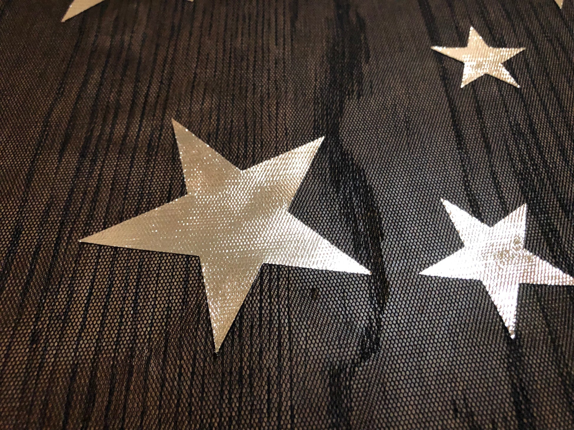 • Finish: Gold foil star printed on sheer black mesh