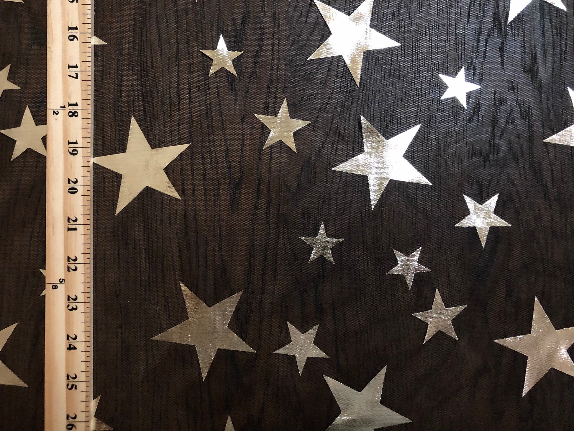 This lightweight 100% polyester mesh drapes easily, making it ideal as an overlay or accent. The metallic stars sparkle with movement and light — perfect for theatrical and festive projects.