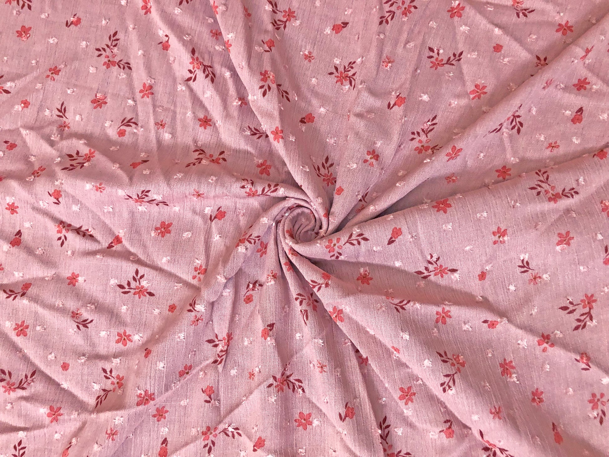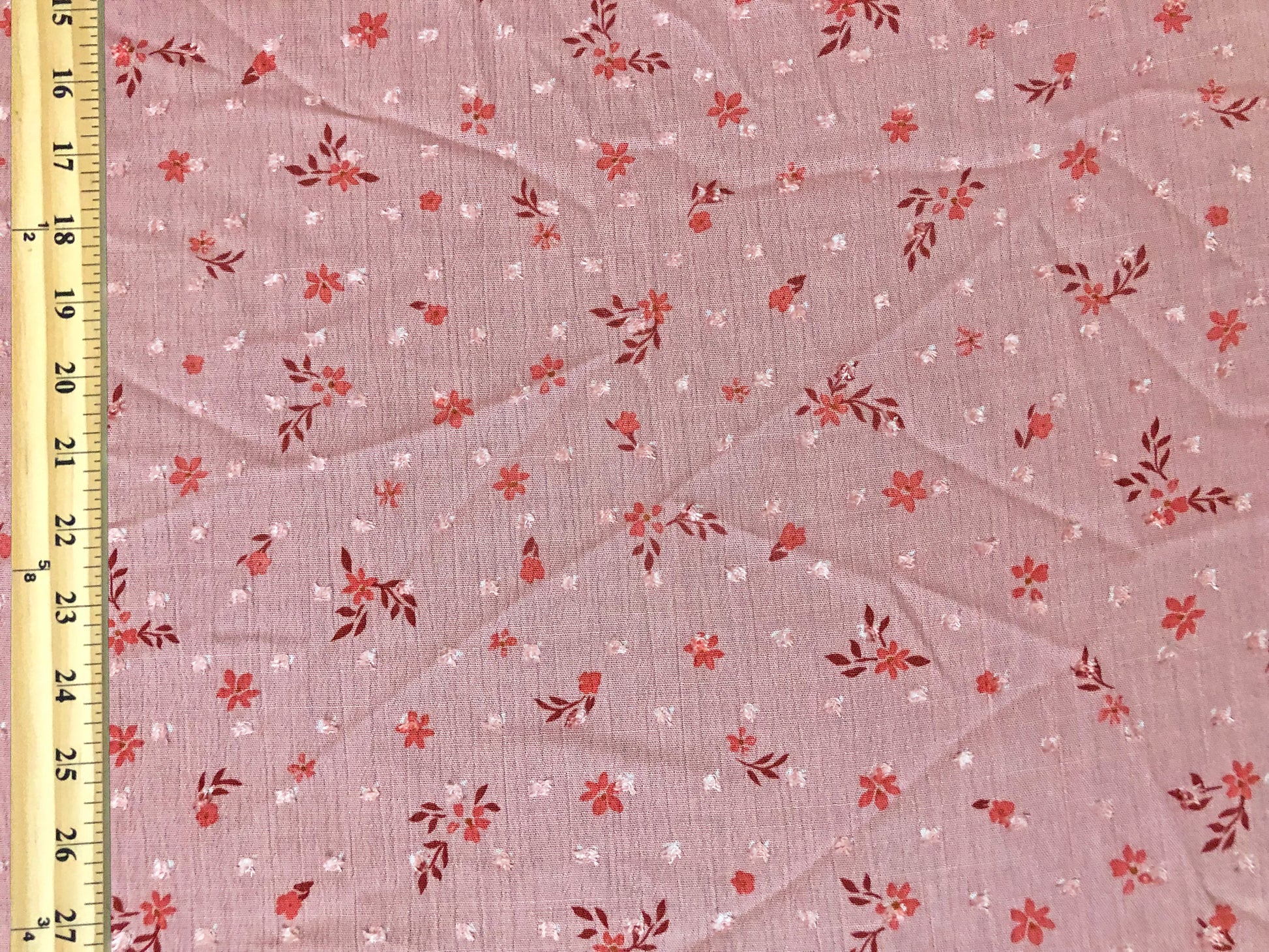 Intense Pink Swiss Dot Rayon Gauze with Red/Coral Ditsy Florals — 100% Rayon, 52″ Wide — Fabric by the Yard (RGZPR09)