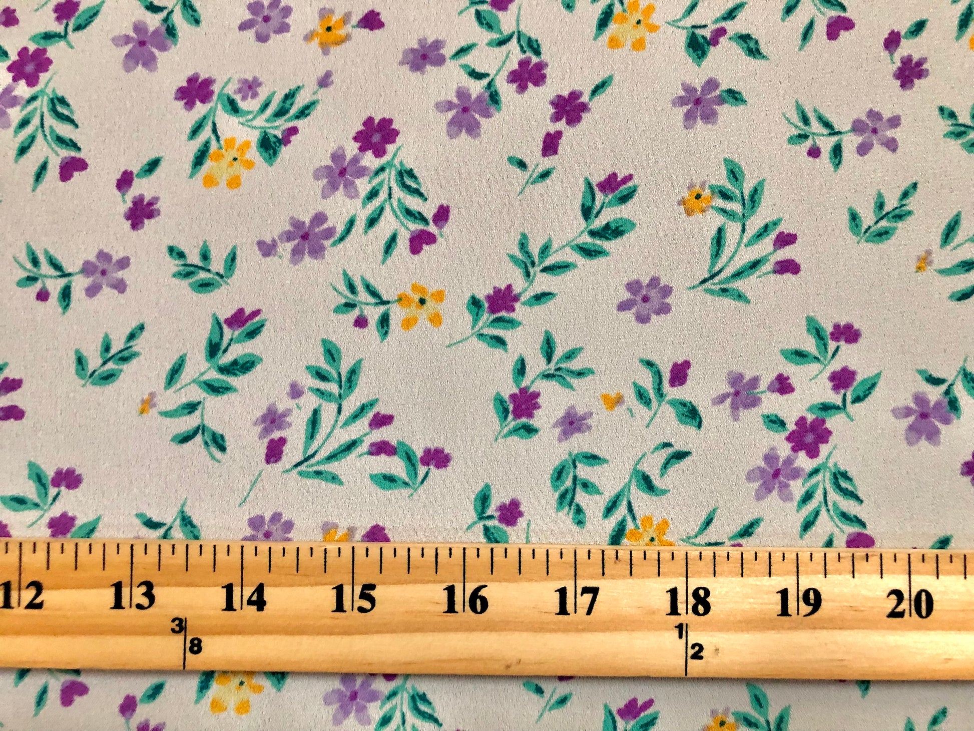 Bring spring to every stitch! This Poly Dobby floats with airy, liquid drape and a soft matte hand. Purple-and-gold ditsy florals on ivory feel fresh and lively—perfect for fluttery blouses, twirl-ready dresses, and breezy scarves.