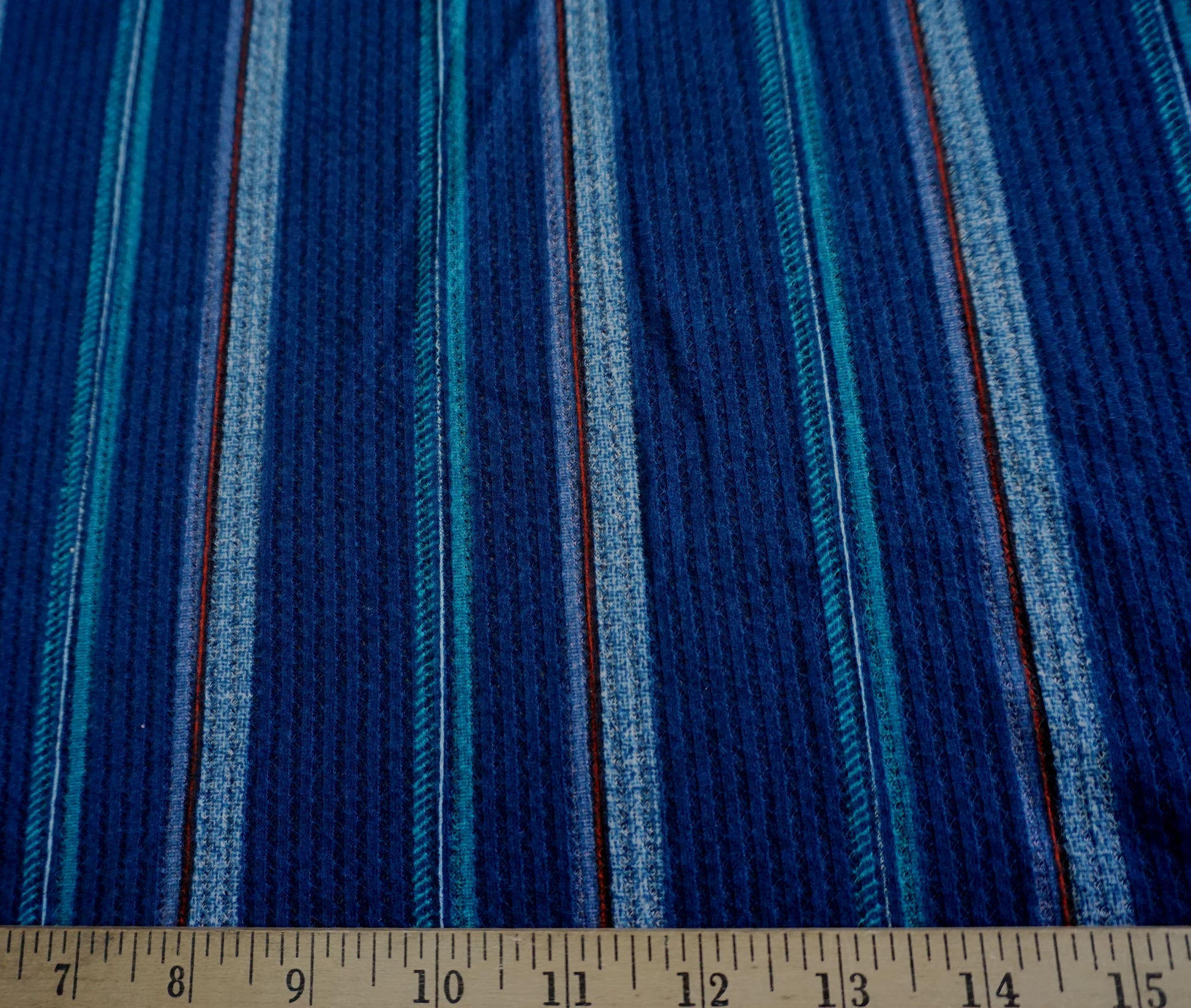 Lightweight Navy/Teal Striped Baby Waffle – Soft, Breathable Cotton-Blend, 58″ Wide, 65/33/2 Stretch – Sold by the Yard (HWPR02)