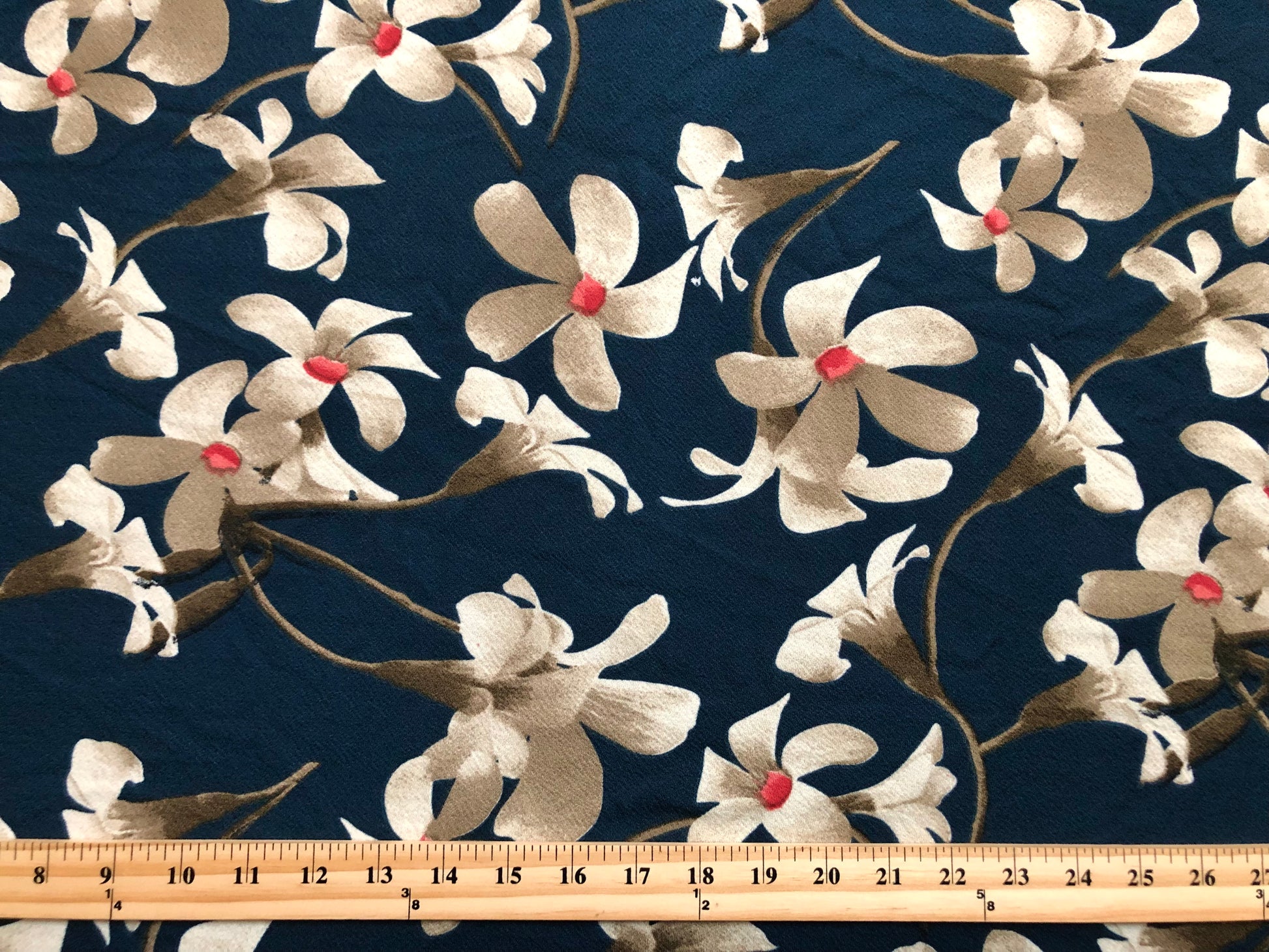 Liverpool Knit Printed Fabric-Teal Brown Flowers-LVPR266-Sold by the Yard-Apparel Fabric