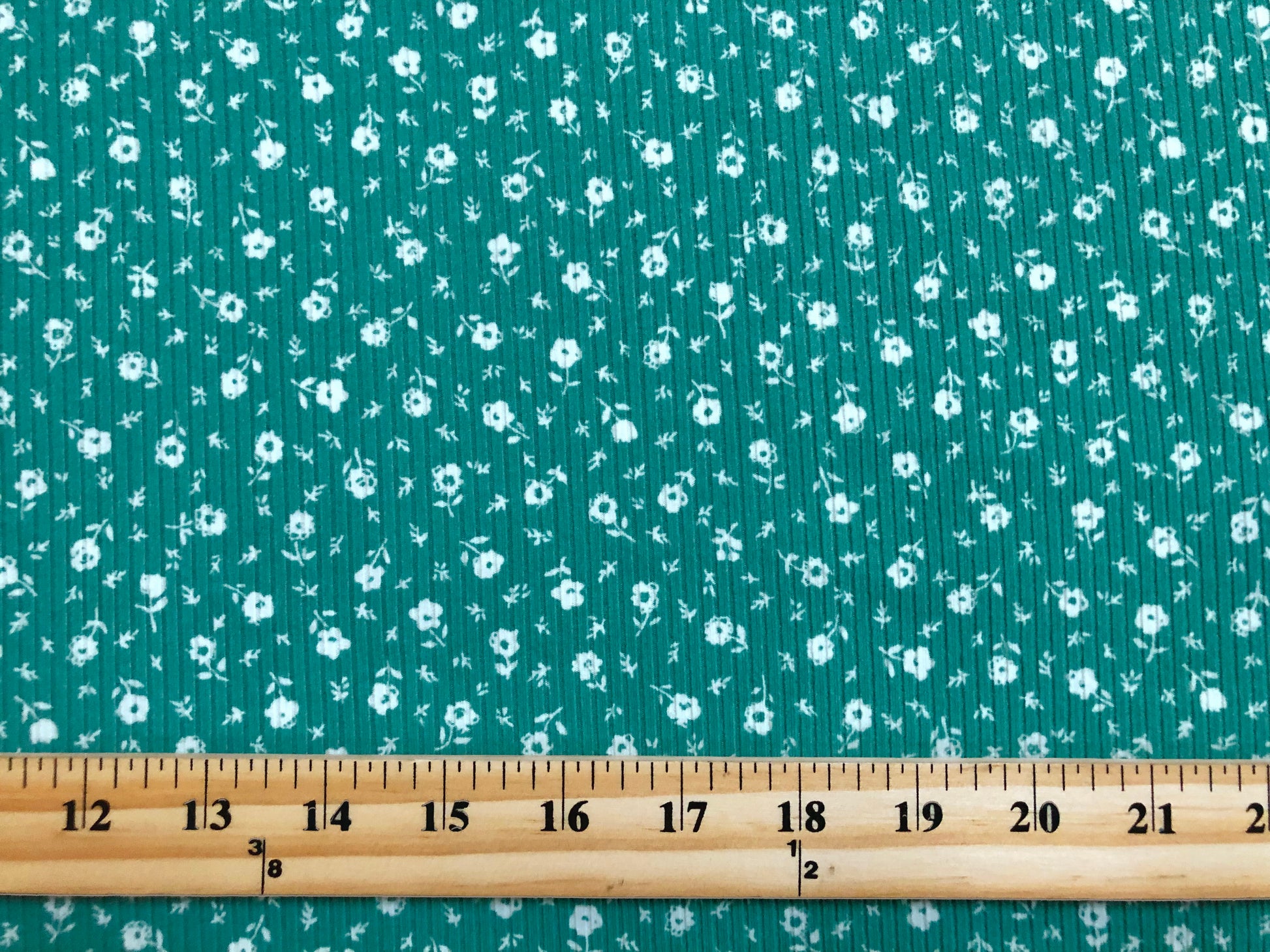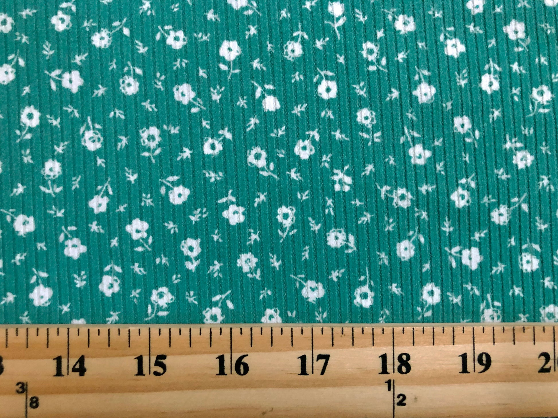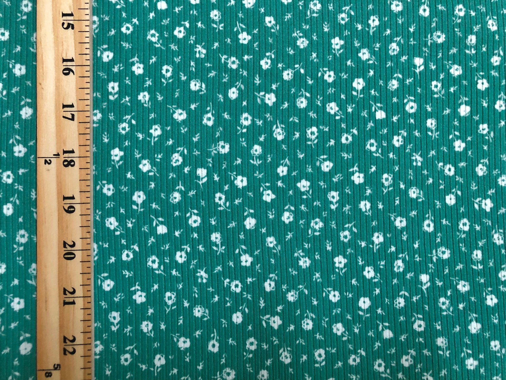 Luxe Rib Knit Fabric – Persian Green Ditsy Floral, Buttery-Soft 4-Way Stretch, 60″ Wide | Poly Rayon Spandex- Sold by the Yard (PRRPR094)