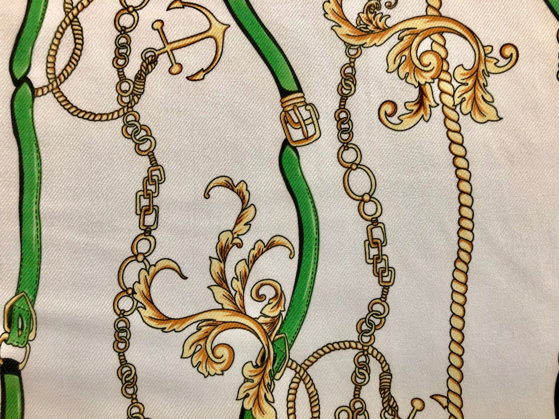 Make chic, scarf‑inspired pieces with this nautical chain & anchor print. Our soft-drape rayon twill has a smooth hand, lively print clarity, and just enough give for comfortable wear.