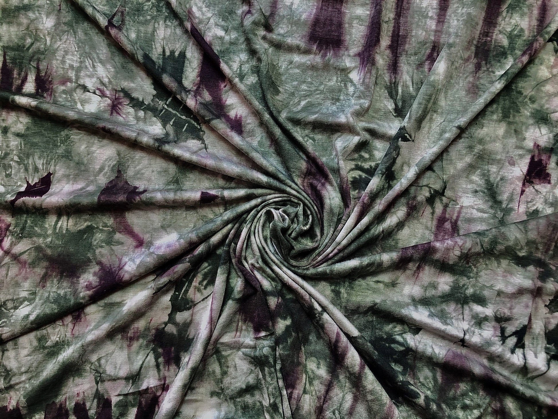 Olive & Maroon Tie‑Dye Rayon Spandex Jersey – Buttery‑Soft Drape, 4‑Way Comfort Stretch – 56" Wide – By the Yard (RSTD01)