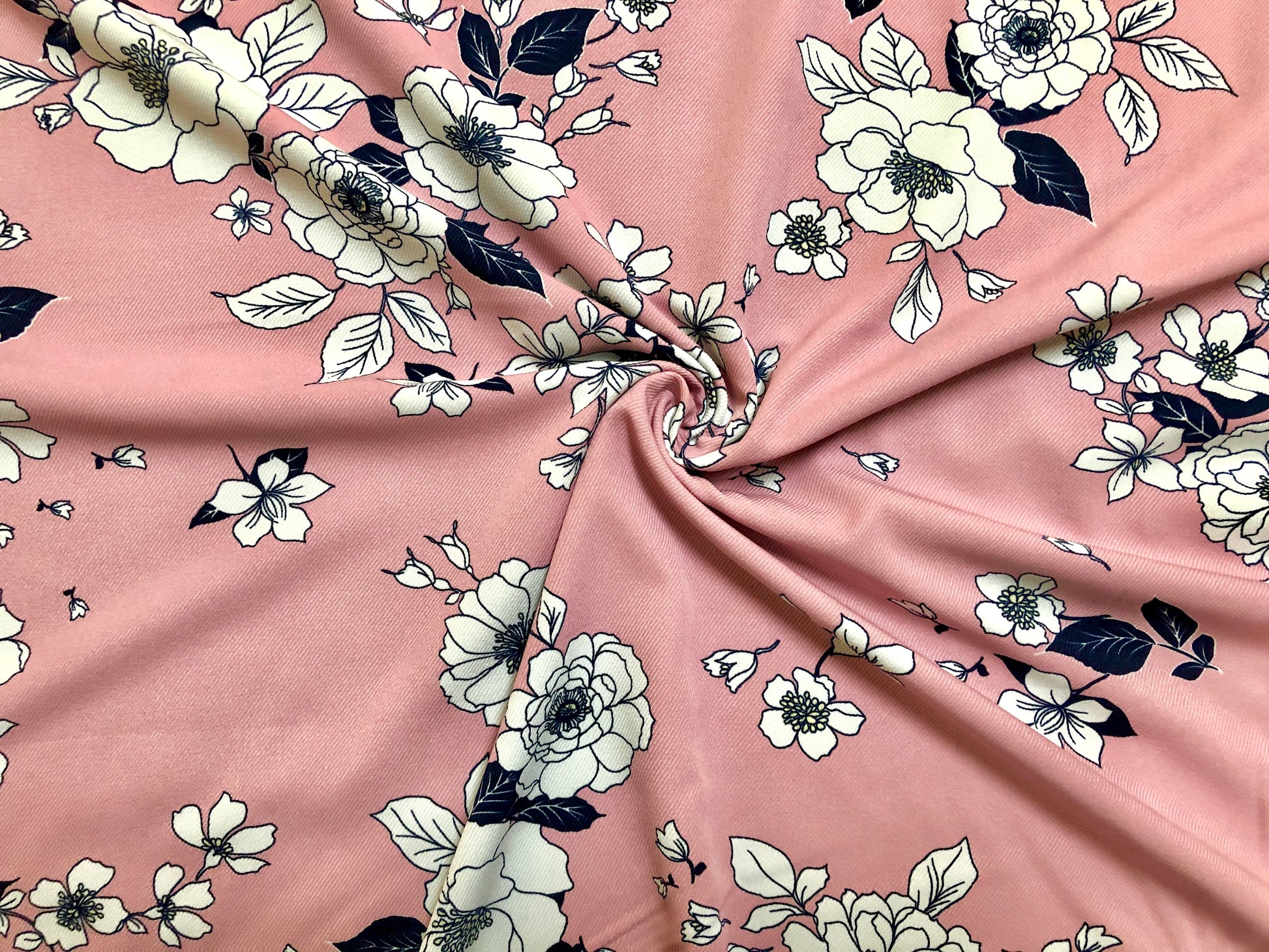 Pink Blossom Floral Rayon Twill - 56" Wide - 64% Polyester / 34% Rayon / 2% Spandex - Sold by the Yard (PRSPR05)