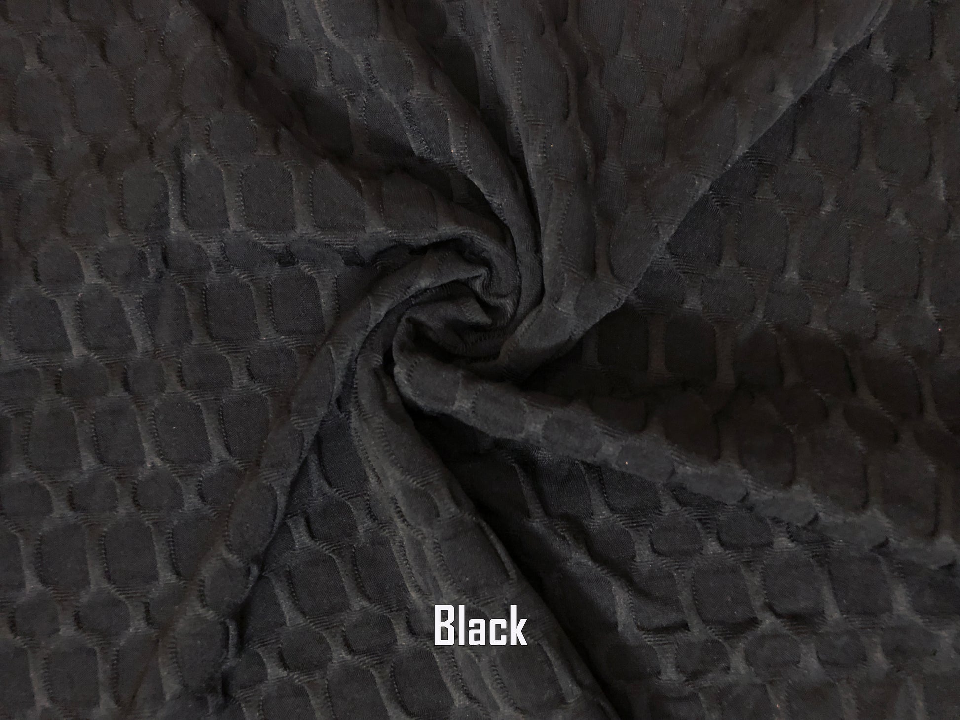 Poly Spandex Honeycomb Textured Fabric-Black Solid Color-HCS001-Sold by the Bulk