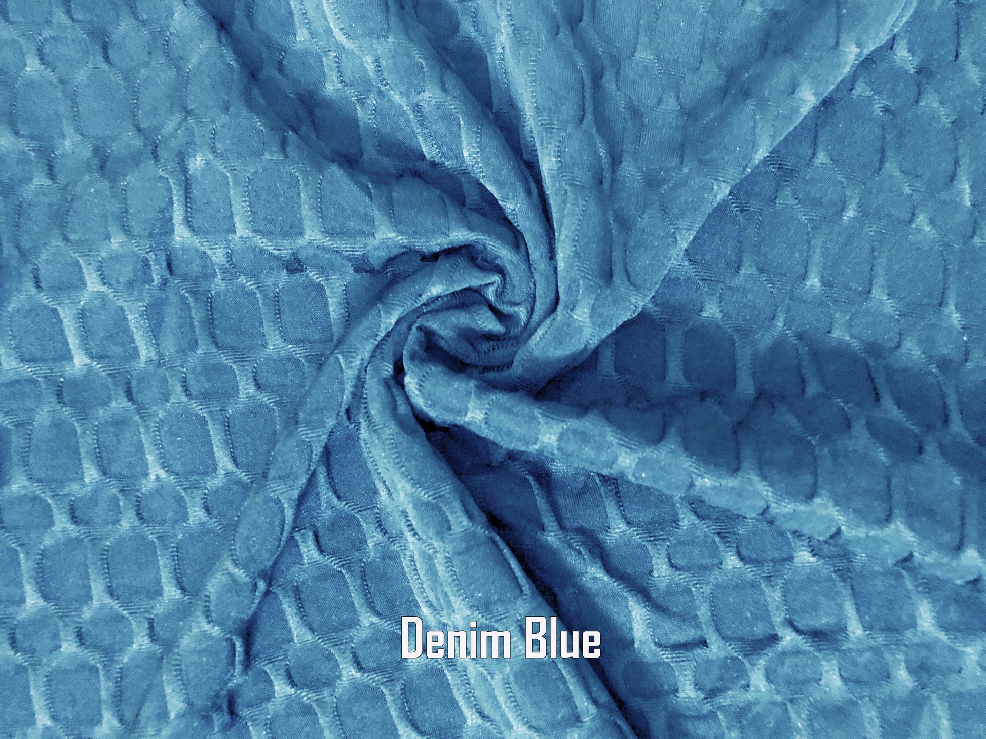 Poly Spandex Honeycomb Textured Fabric-Denim Blue Solid Color-HCS002-Sold by the Bulk