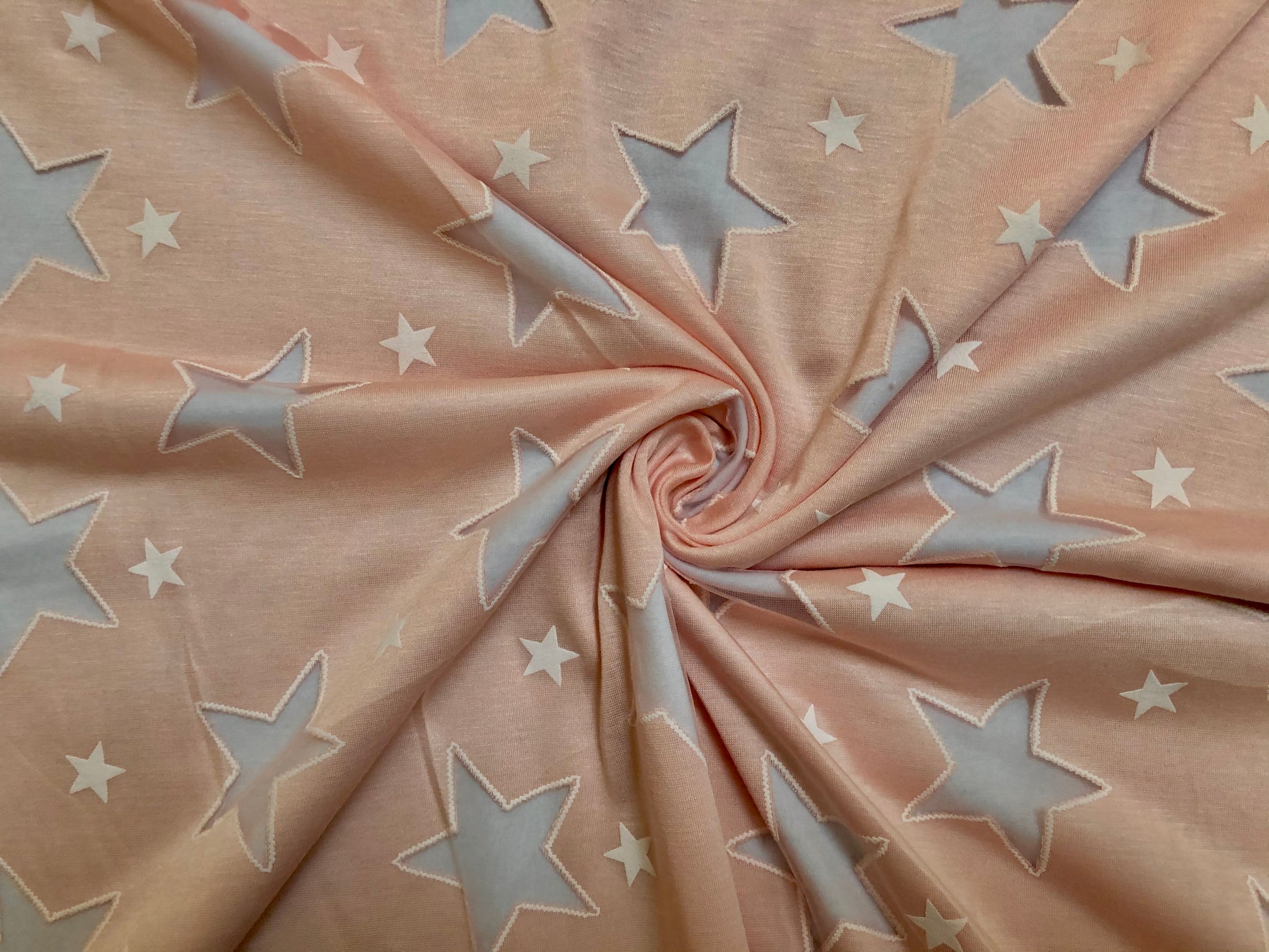 Premium Rayon Spandex Jersey – Buttery-Soft Drape, Comfy Stretch – Melon Hallow Star– 56" Wide – By the Yard (RSPR07)