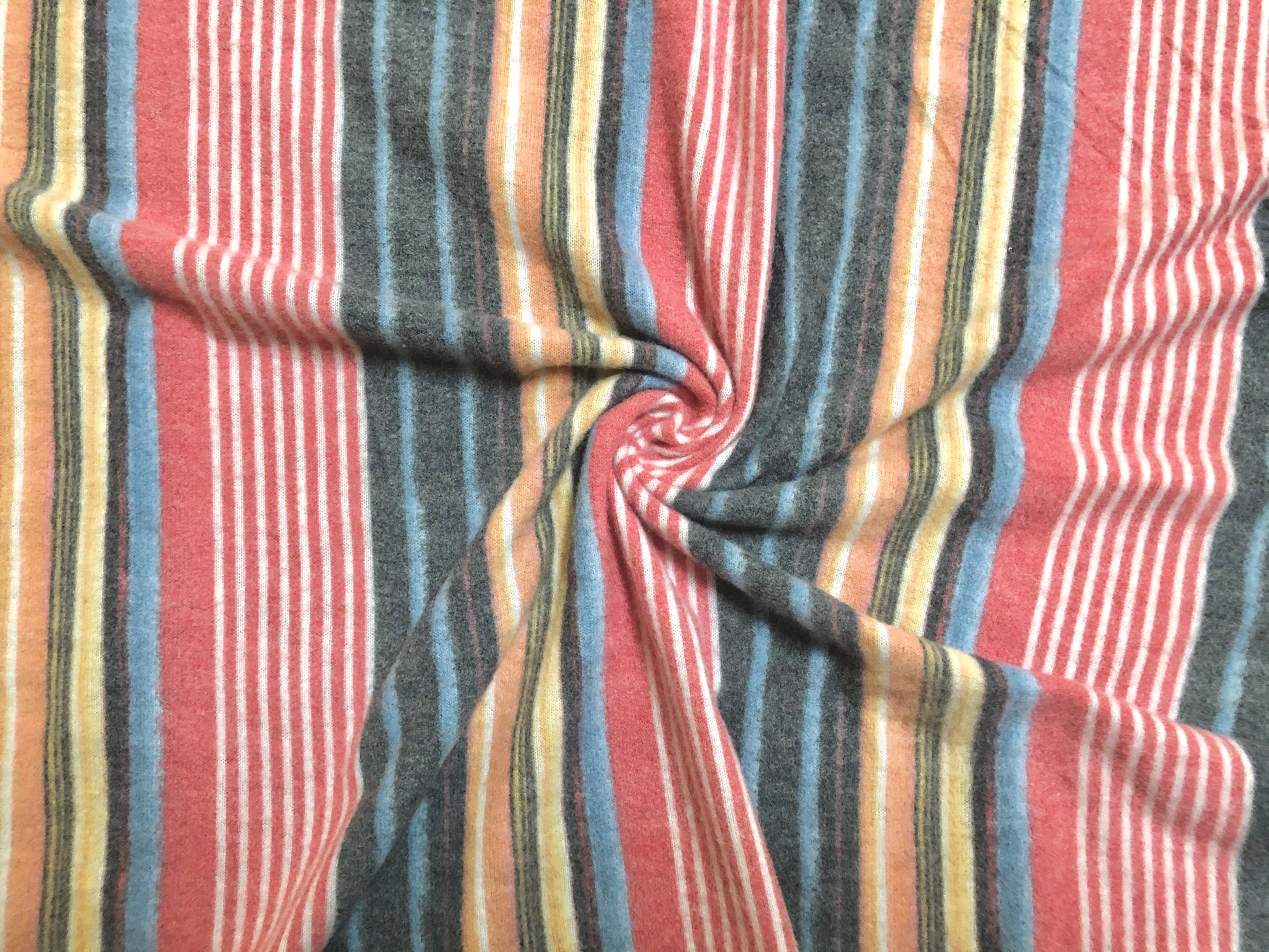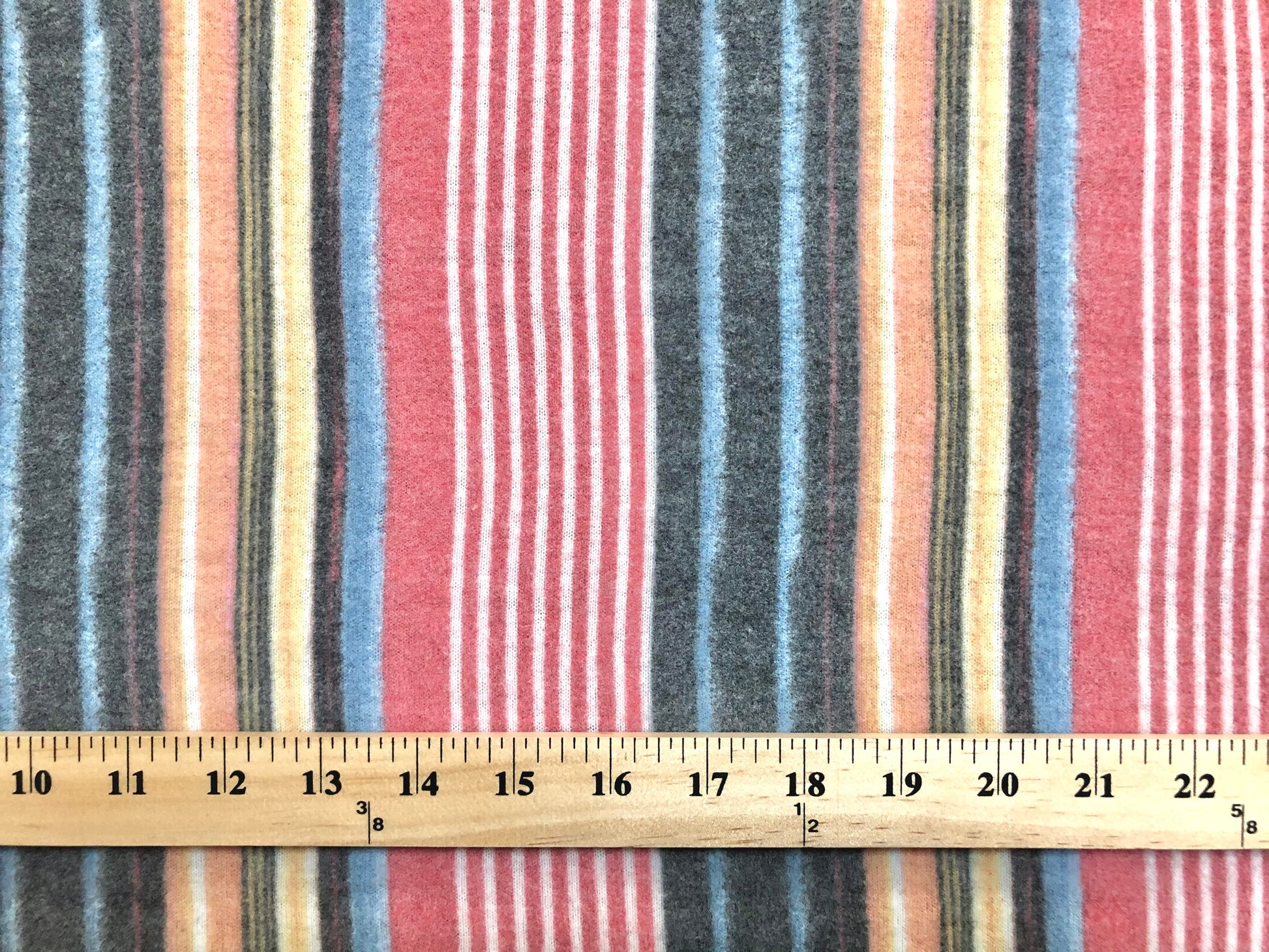 Premium Ultra-Soft Brushed Hacci Sweater Knit – Coral/Charcoal/Gold/Blue Multi-Stripe, 58″ Wide, 95% Polyester 5% Spandex – Sold by the Yard (HBPR031)