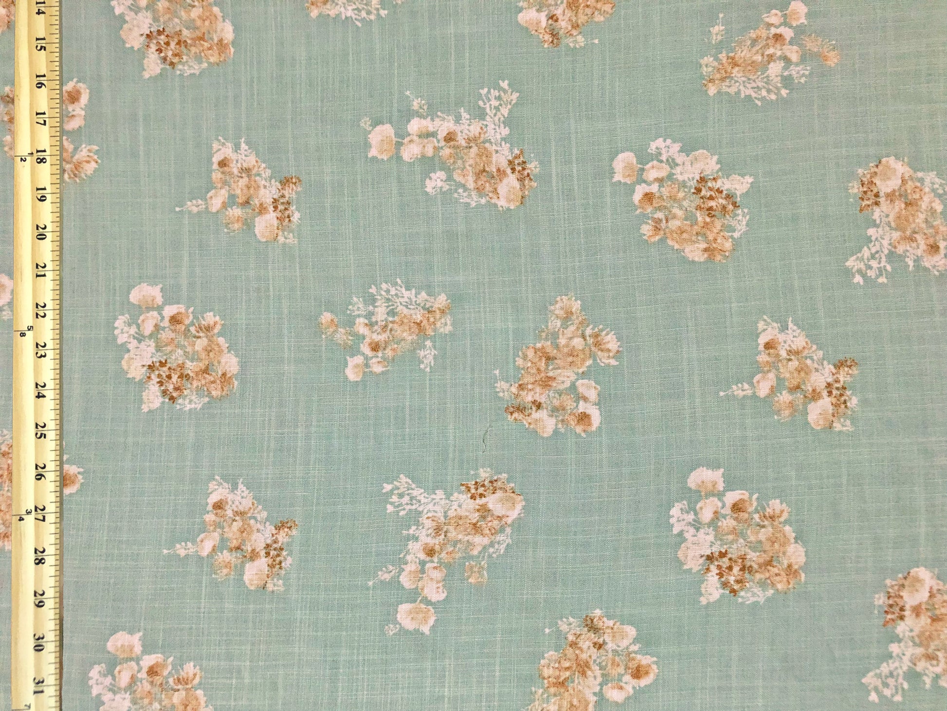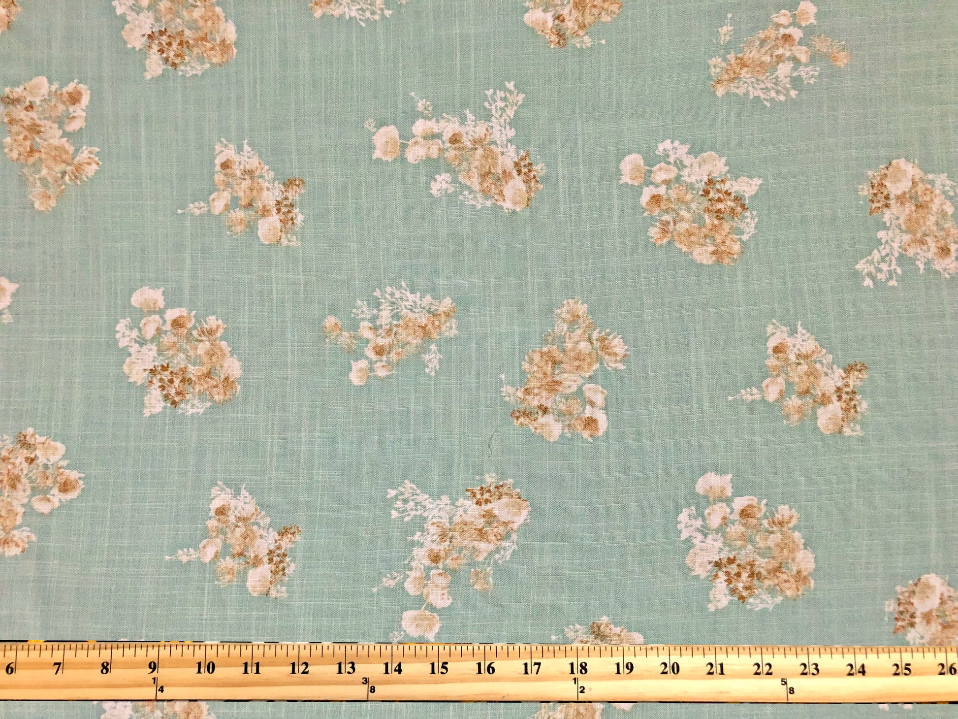 Sage Green Rayon Slub with Cream/Beige Floral Sprigs — 100% Rayon, 52″ Wide — Fabric by the Yard (RSLPR01)