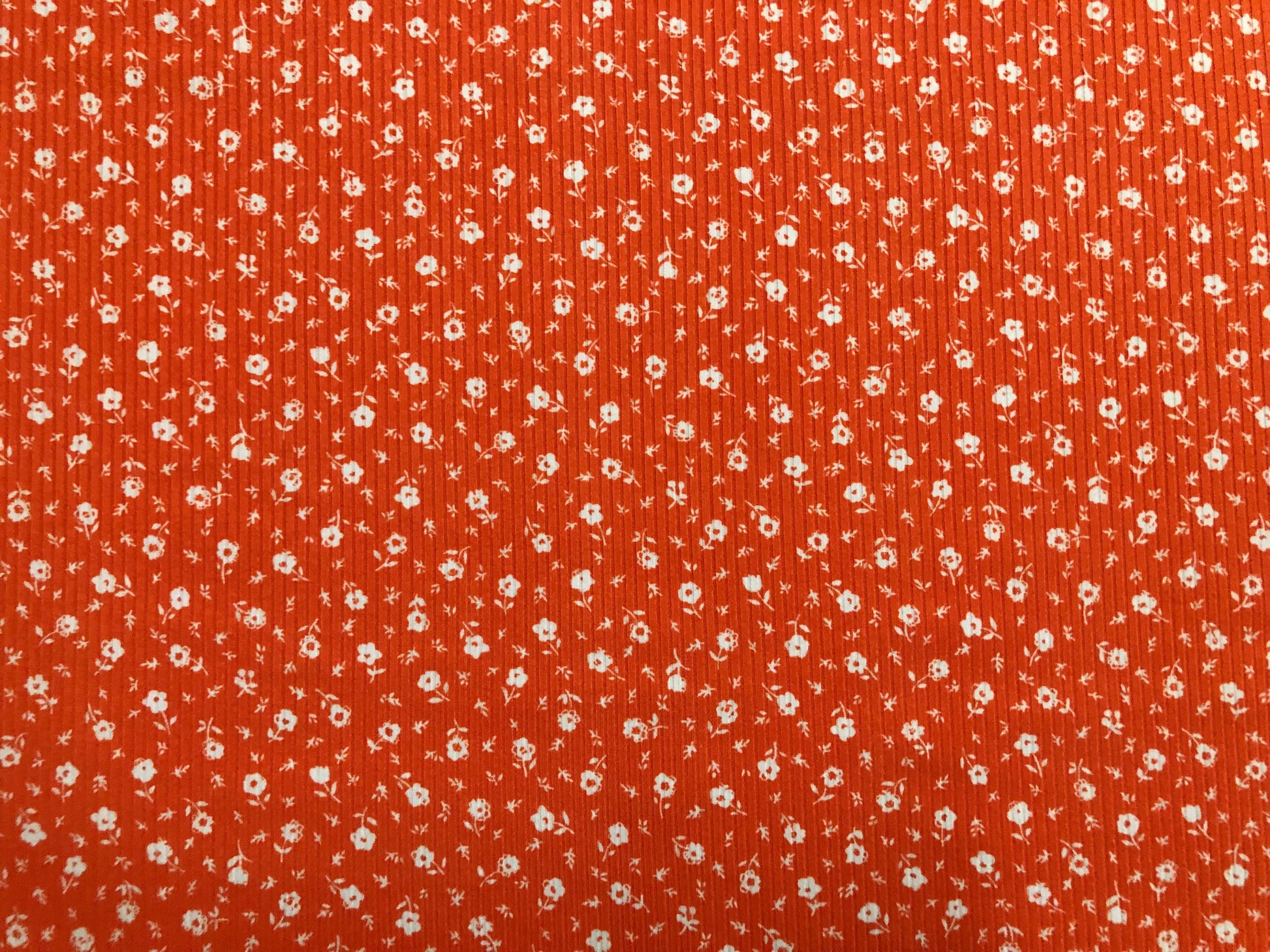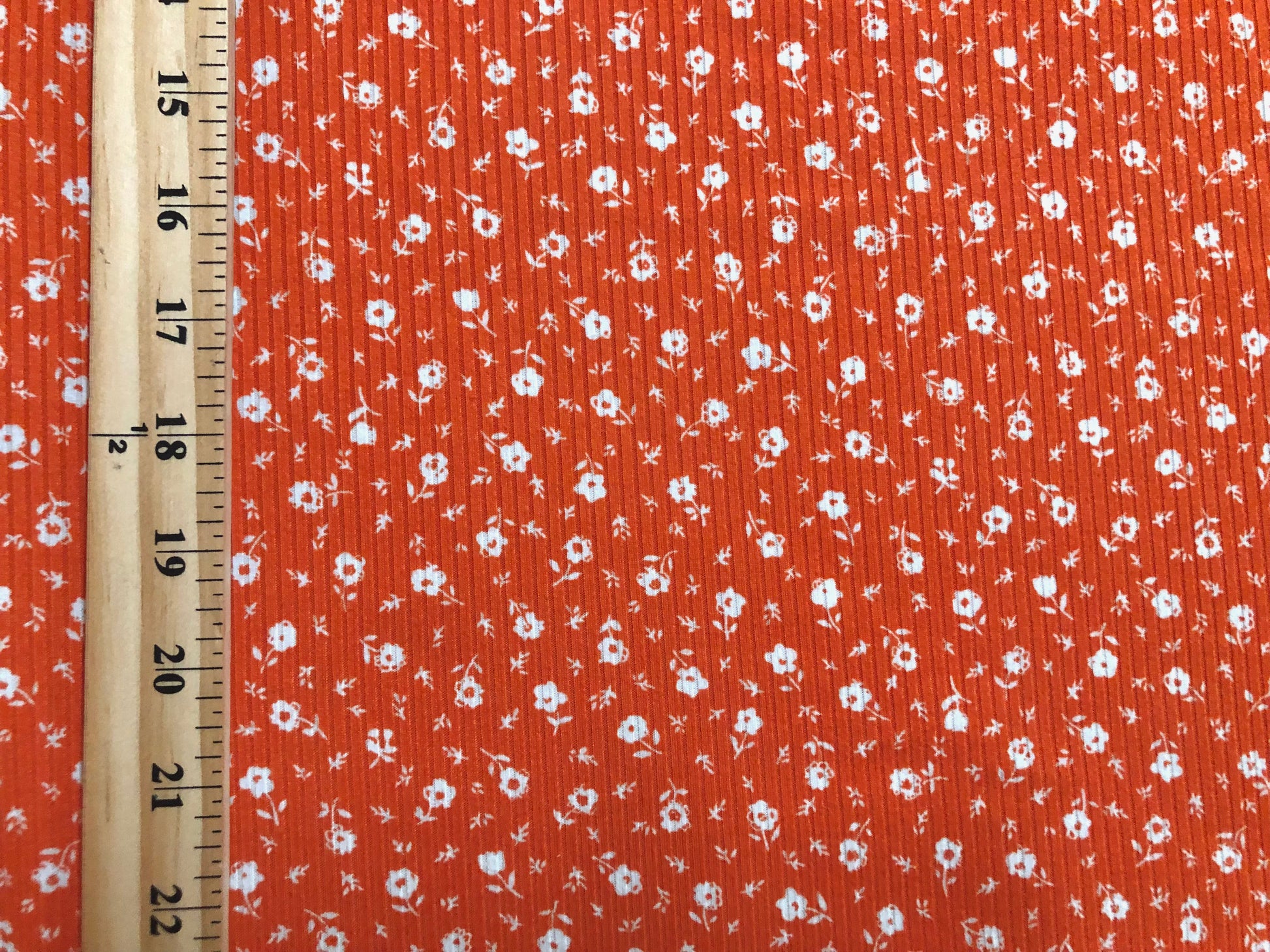 Soft 4-Way Stretch Rib Knit – Orange & White Ditsy Floral-60” Wide-Poly/Rayon/Spandex, Sold by the Yard (PRRPR098)