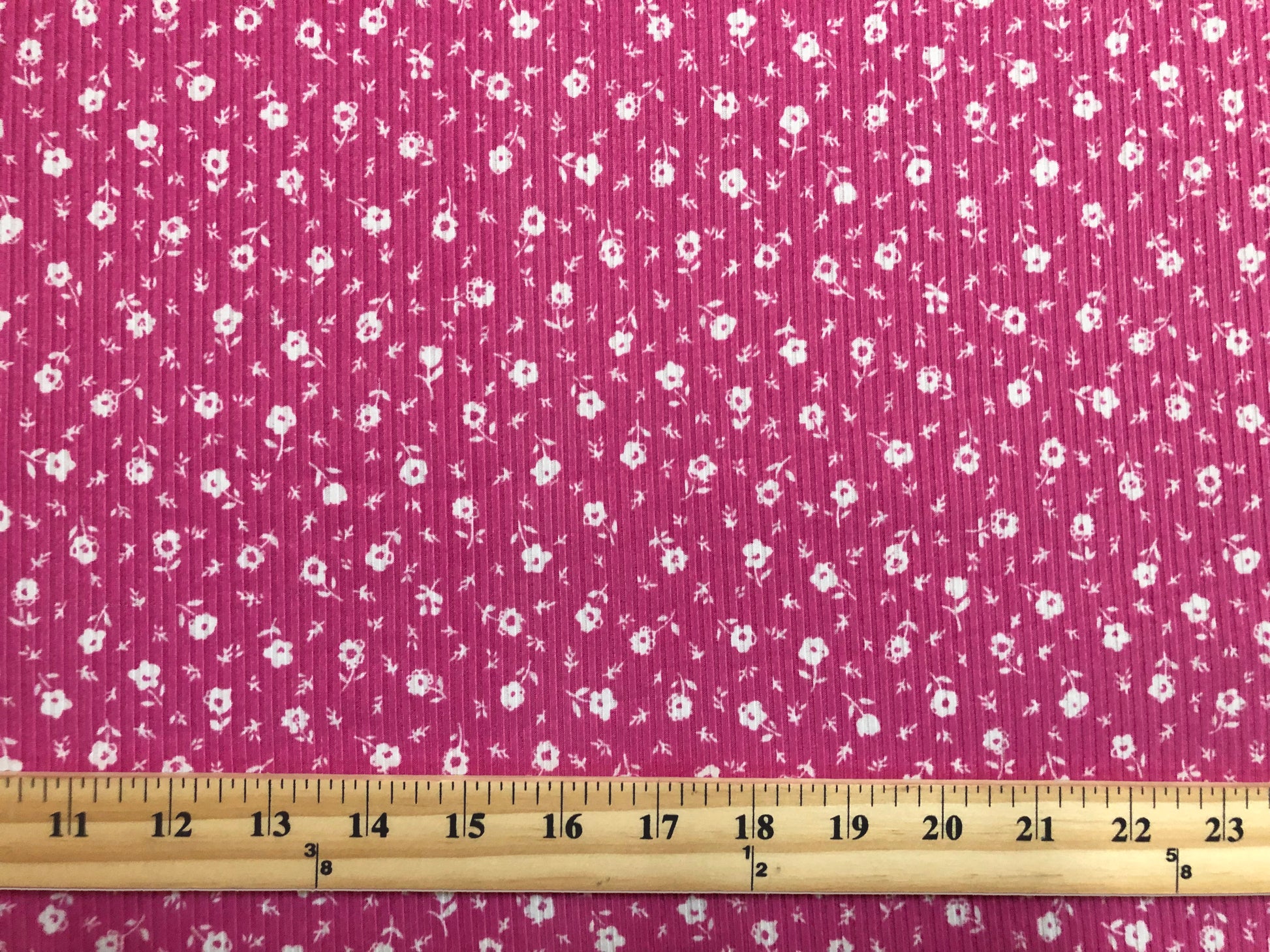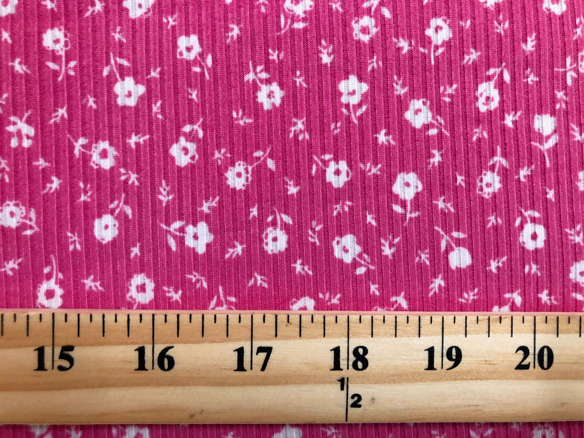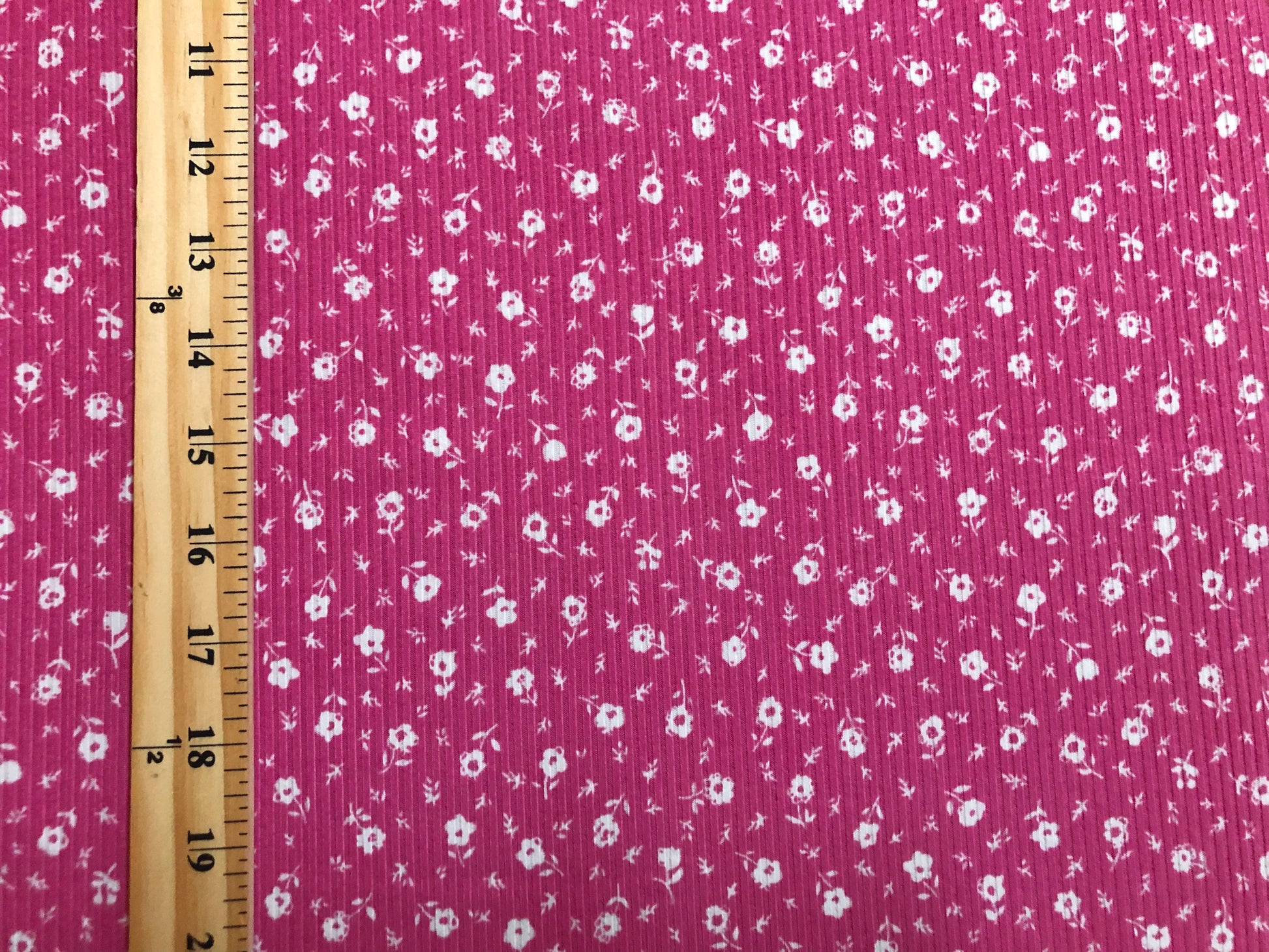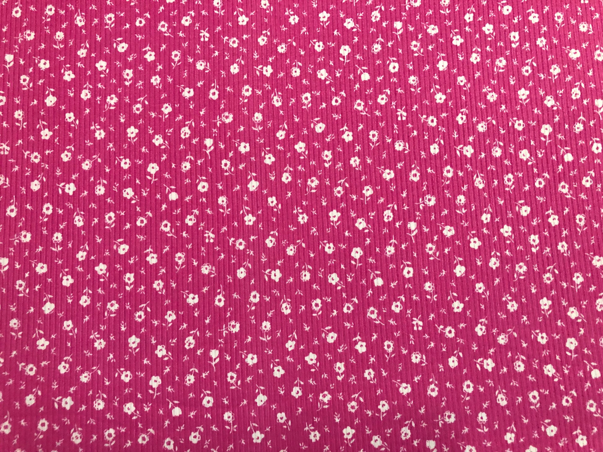 Soft Rib Knit Ditsy Floral – Fuchsia Pink & White- 4 Way Stretch-60" Wide-Poly/Rayon/Spandex by the Yard (PRRPR099)