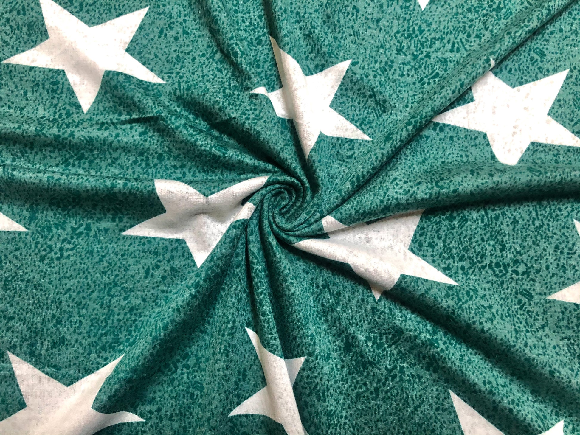 Bring your sewing projects to life with our Star Print Teal French Terry Knit Fabric. Crafted from a soft and breathable blend of 65% Rayon, 30% Polyester, and 5% Spandex, this mid-weight fabric offers just the right amount of stretch and drape for comfort and style. The bold white star design on a teal background adds a modern, playful touch – making it a standout choice for fashion and crafting.