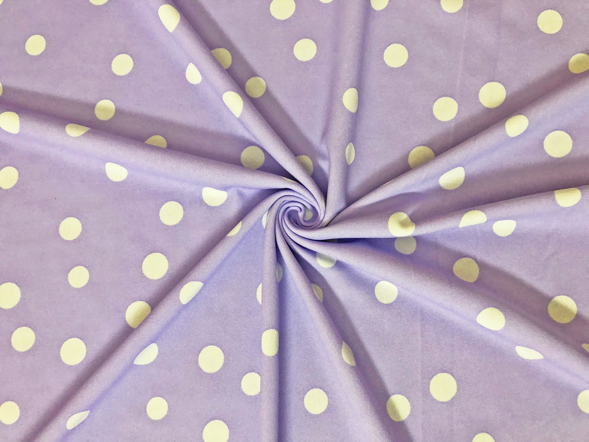 Techno Crepe Knit — Lavender & Ivory Polka Dot, 4-Way Stretch, 240 GSM, 56" Wide, Wrinkle Resistant - By the Yard (TCRP0105)