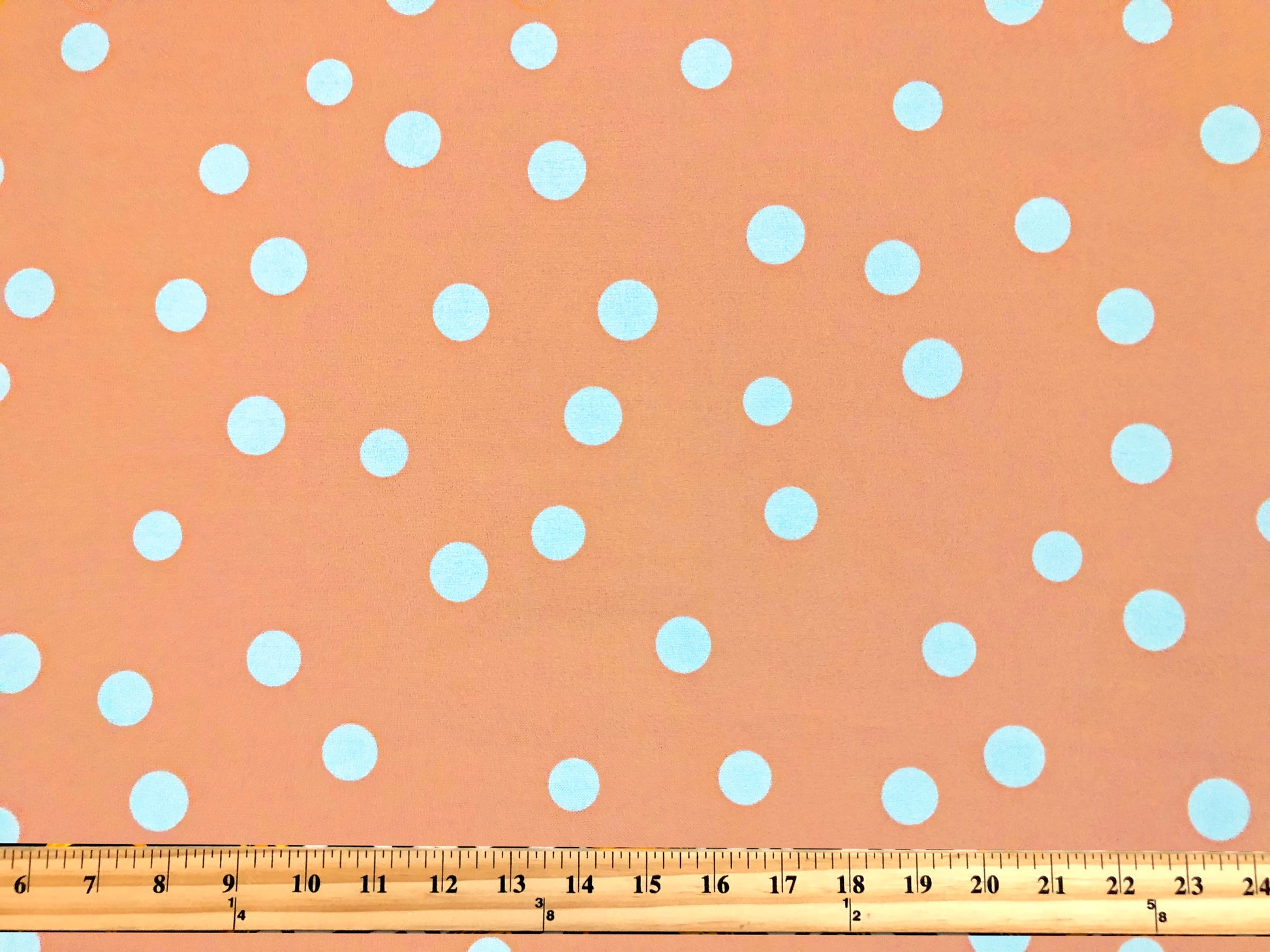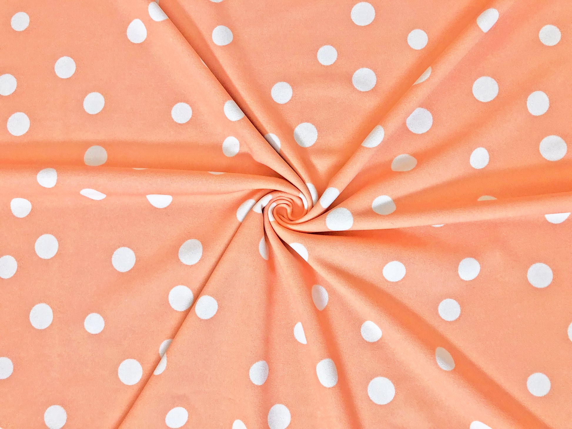 Techno Crepe Knit — Melon & White Polka Dot, 4-Way Stretch, 240 GSM, 56" Wide, Wrinkle Resistant - By the Yard (TCRP0106)