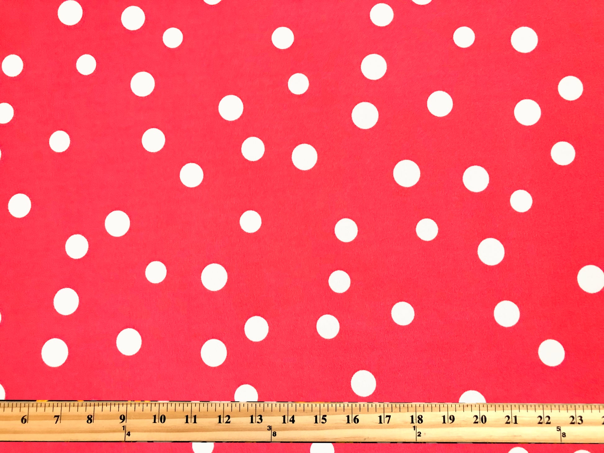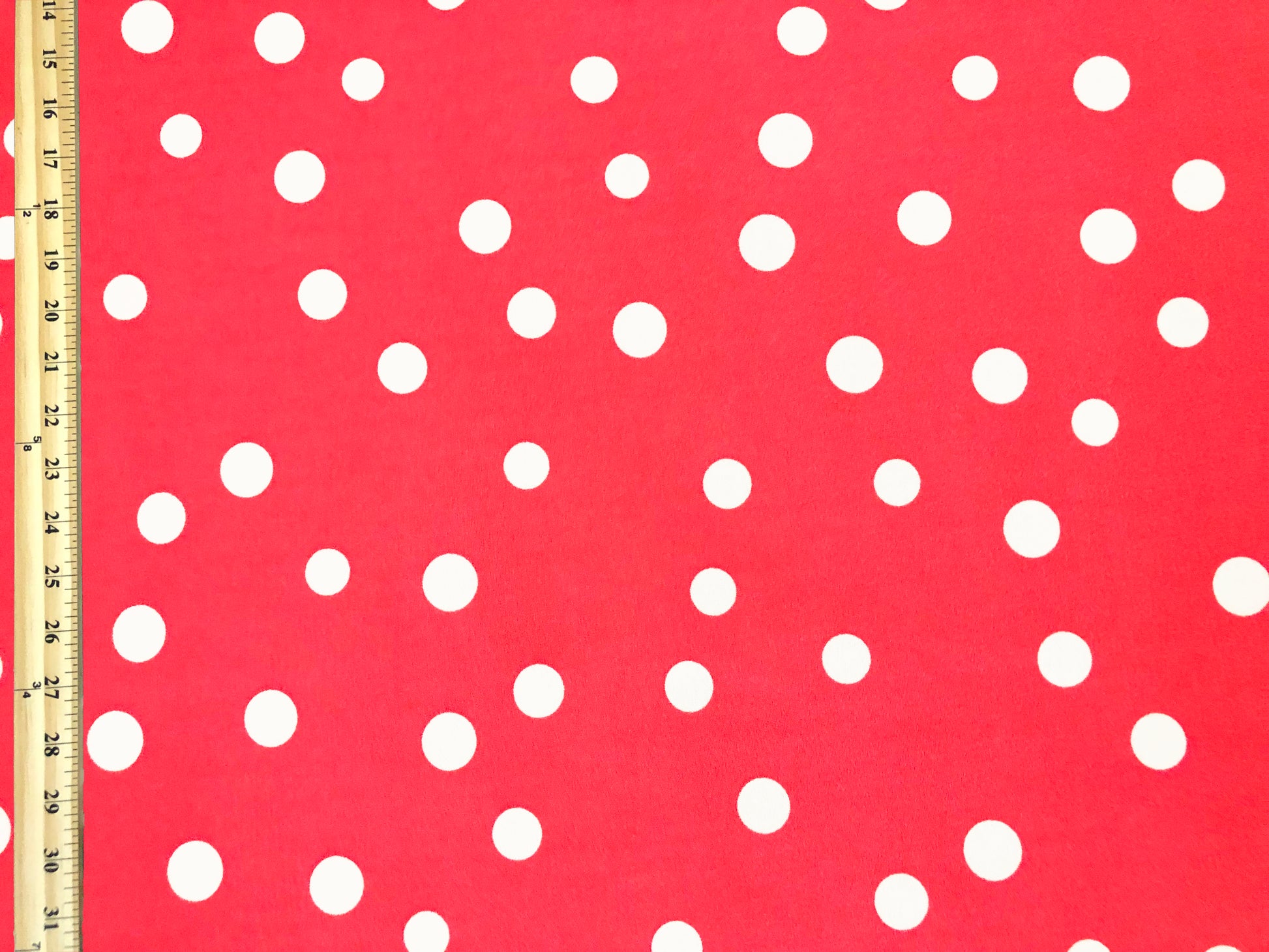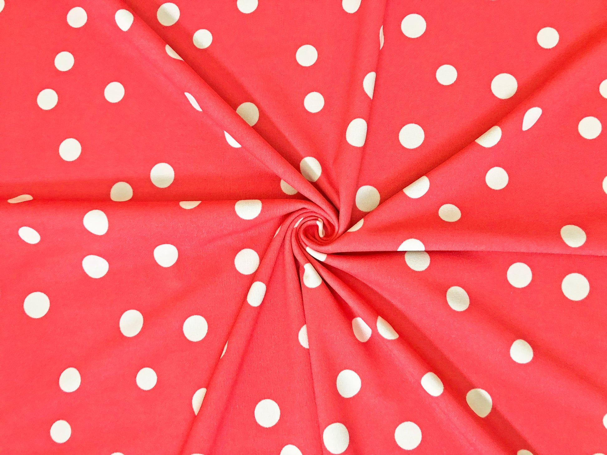 Techno Crepe Knit – Raspberry Red & White Polka Dot, 4-Way Stretch, 240 GSM, 56" Wide, Double Knit – Sold by the Yard (TCRP0109)