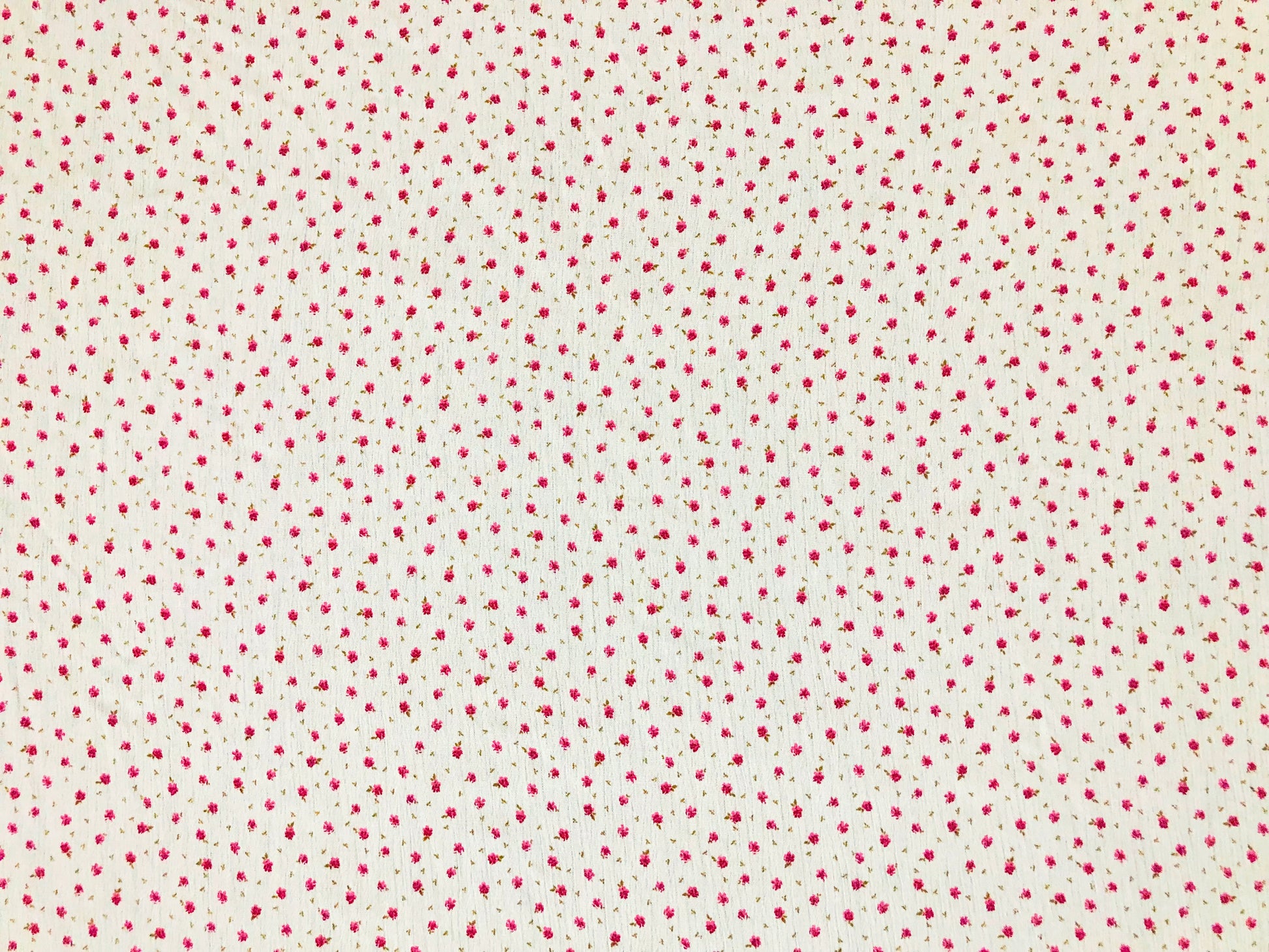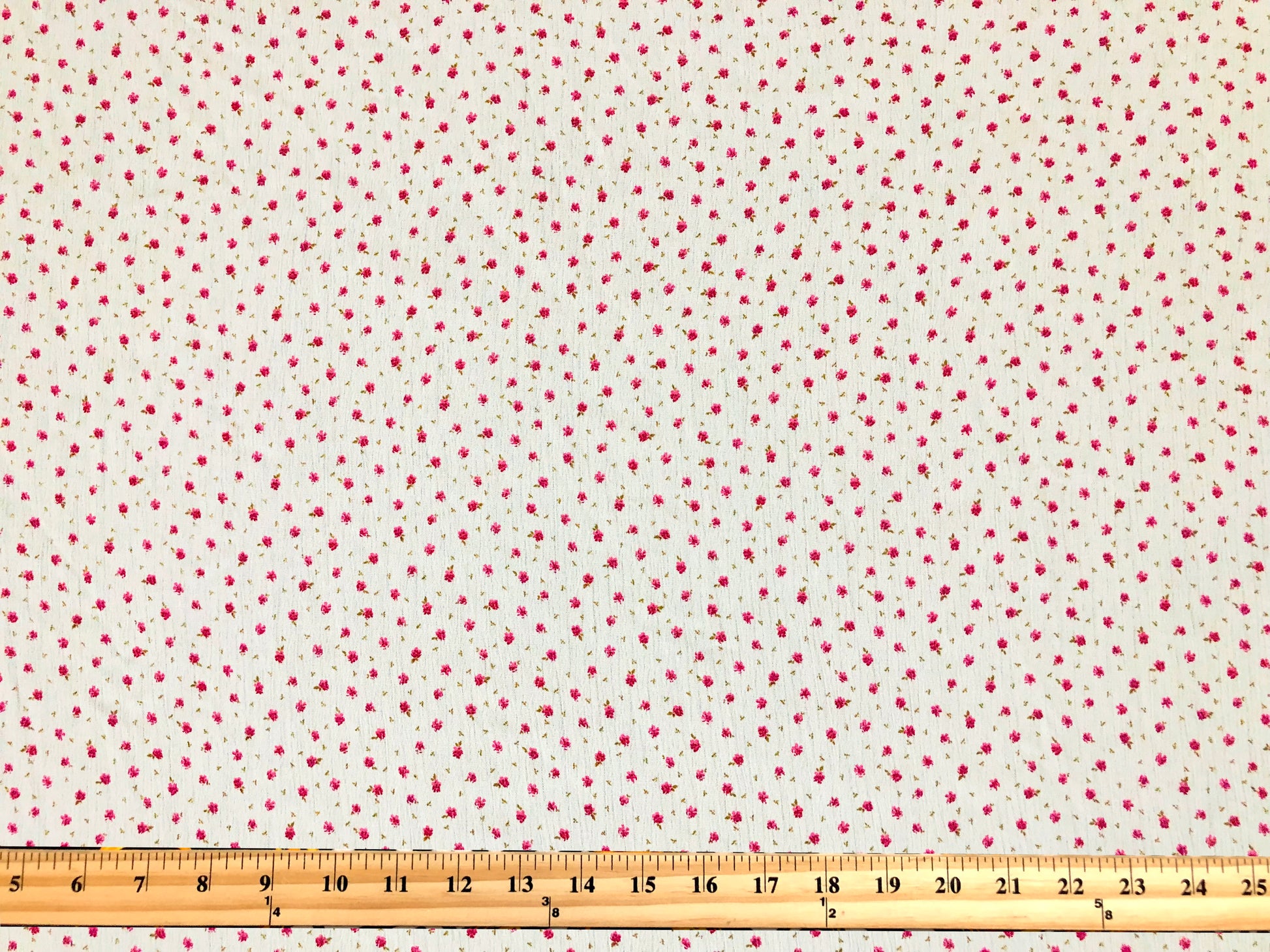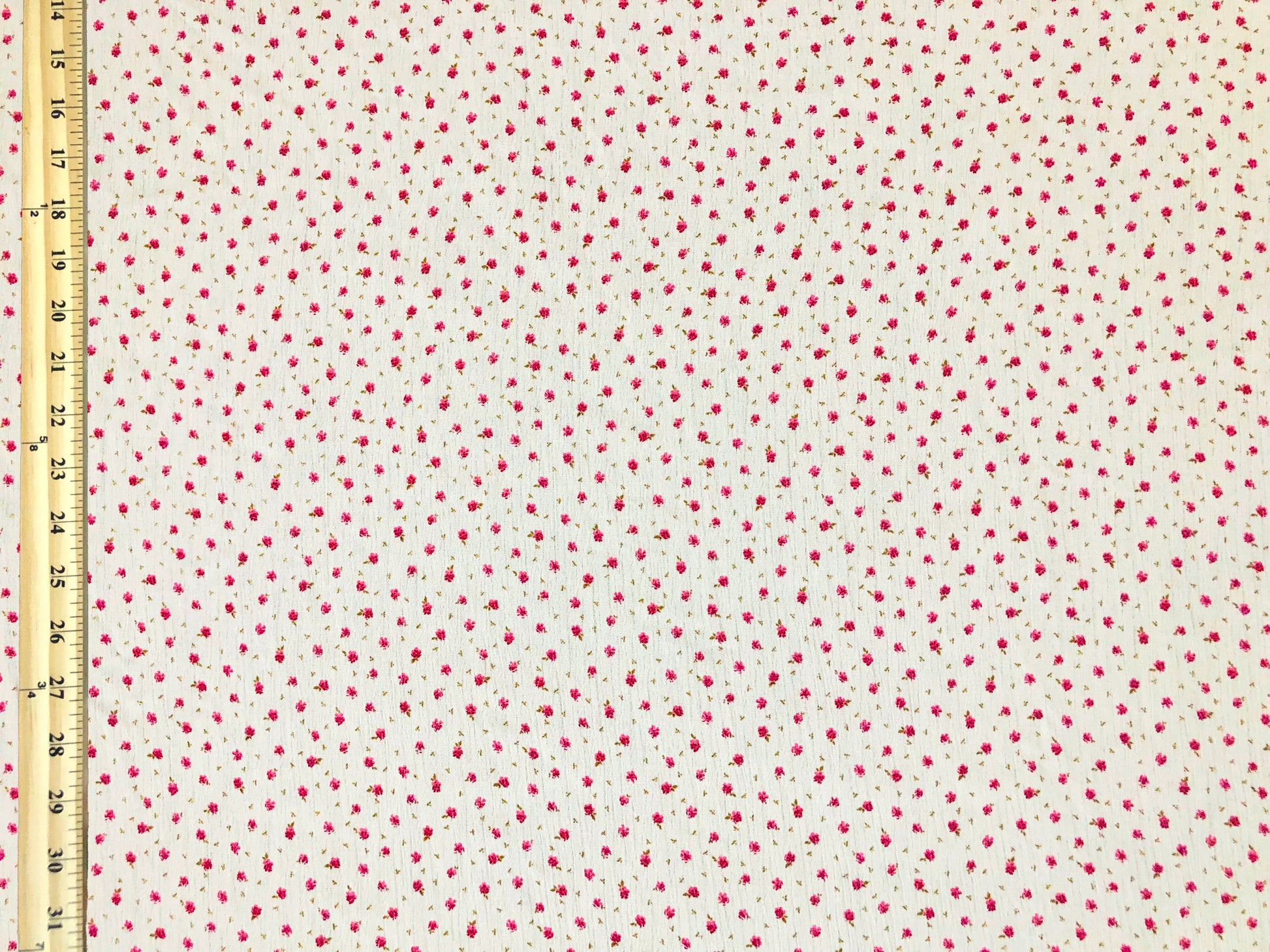 White Rayon Crinkle with Red Ditsy Florals & Olive Sprigs — 100% Rayon, 52″ Wide — Fabric by the Yard (RCKPR02)