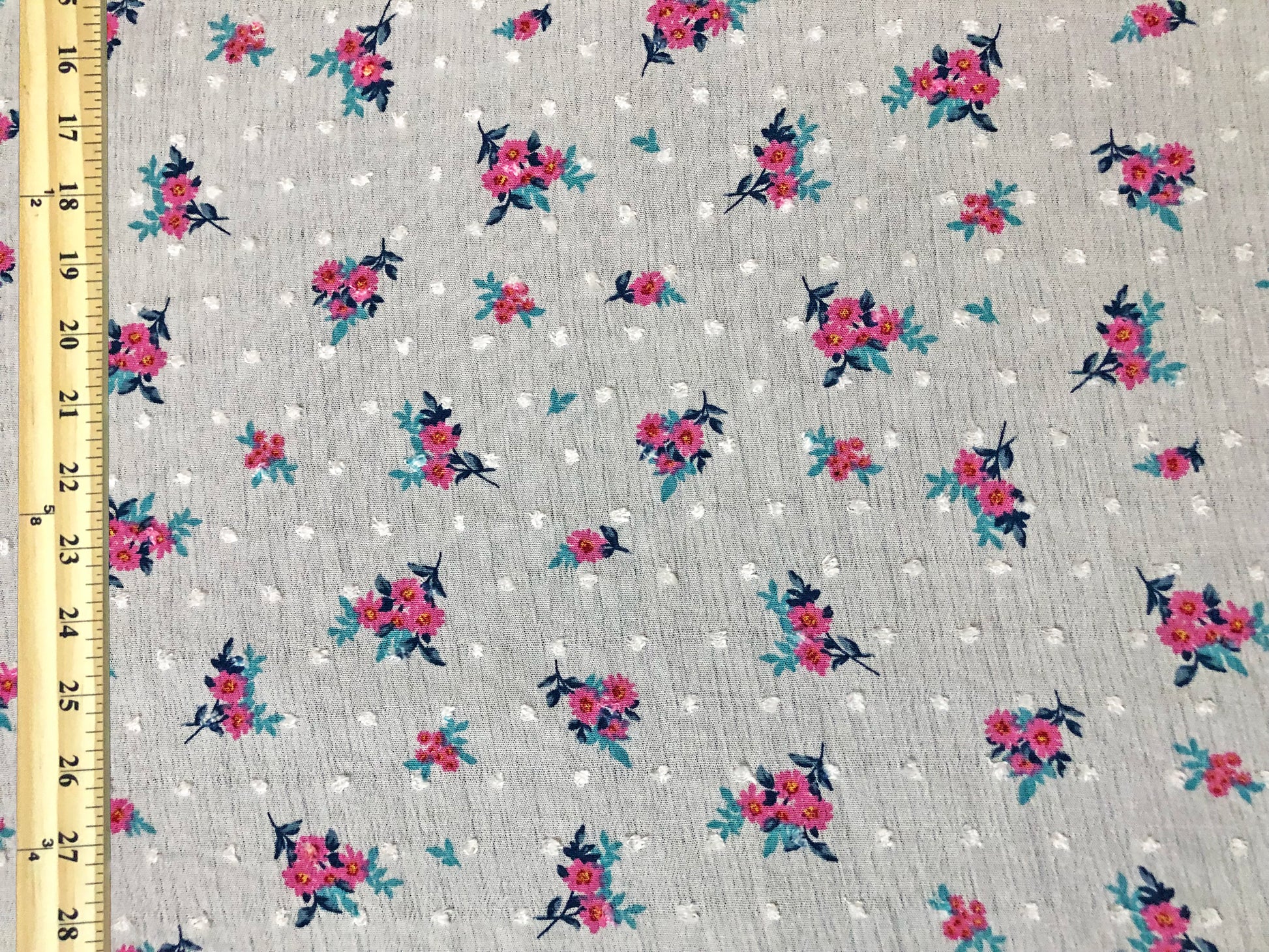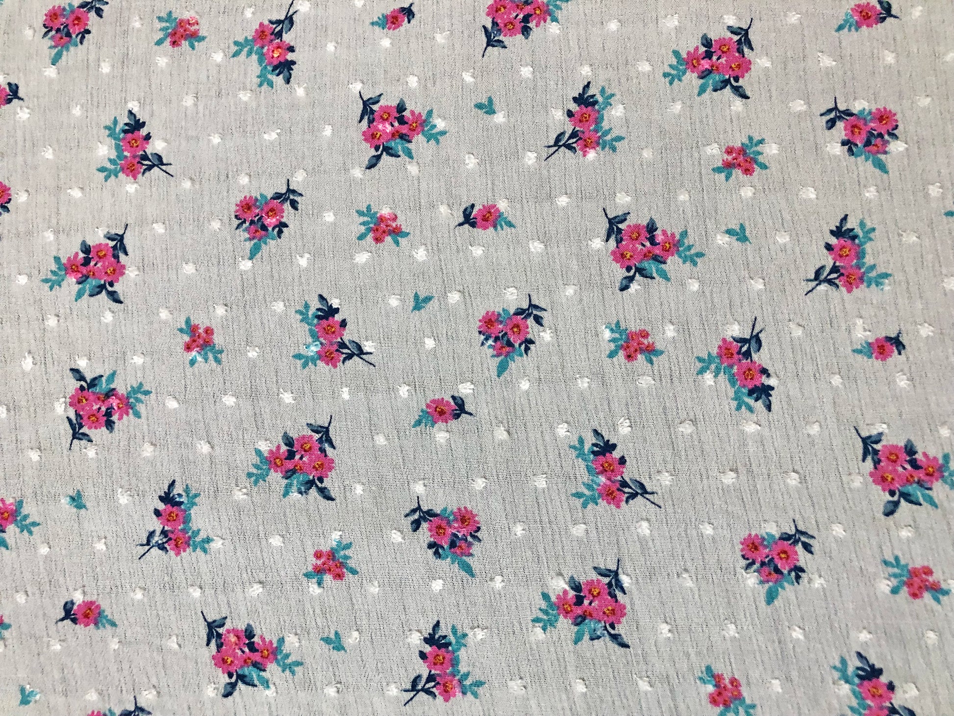 • 🔘Weave/Texture: Swiss dot rayon gauze with ditsy floral print